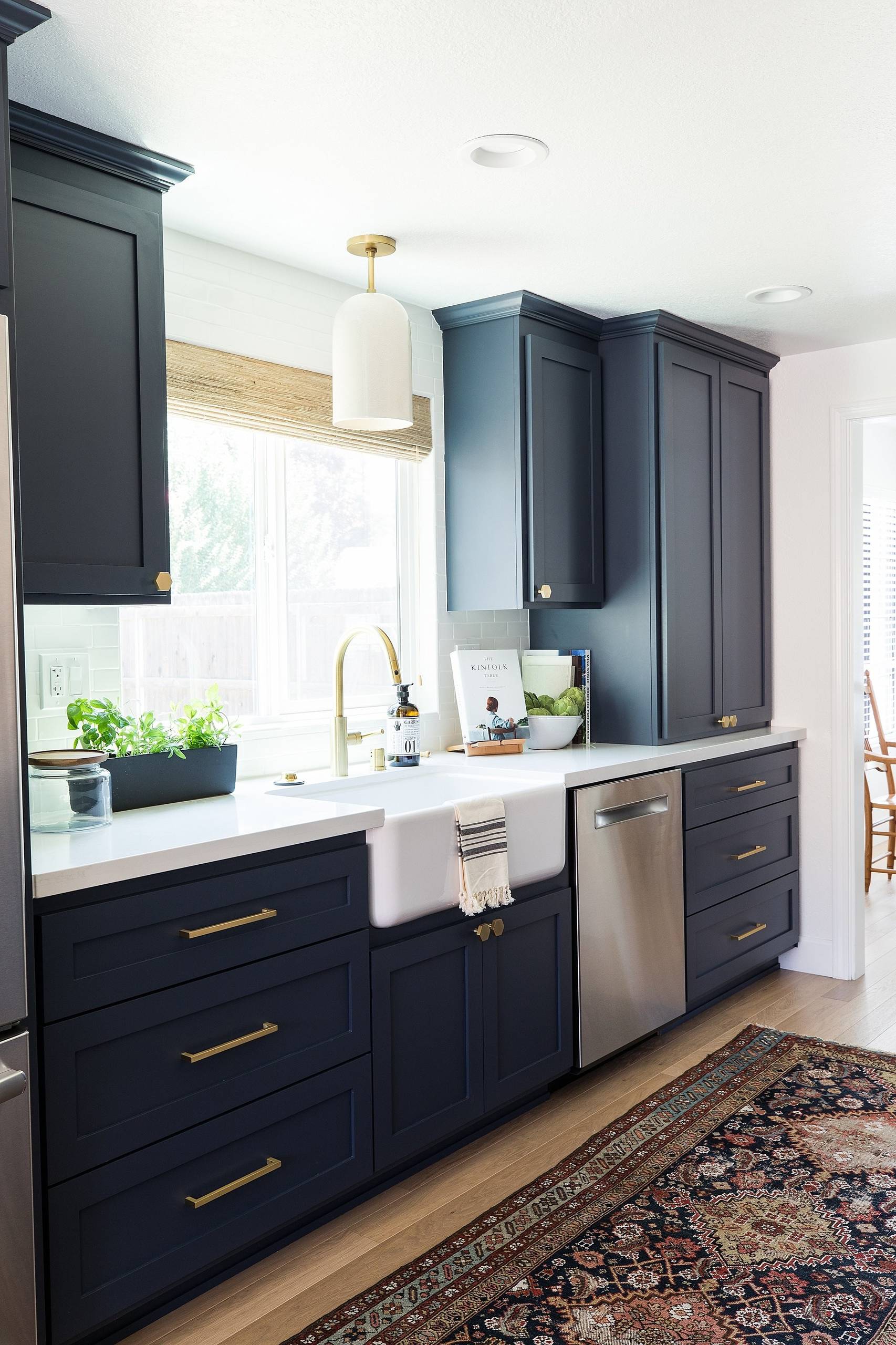 Design Shop Interiors used an apron-front sink in the Sacramento, California, kitchen shown here, which won the firm a Best of Houzz Design award. The large sink adds a punch of white to the blue cabinets (Hale Navy by Benjamin Moore).