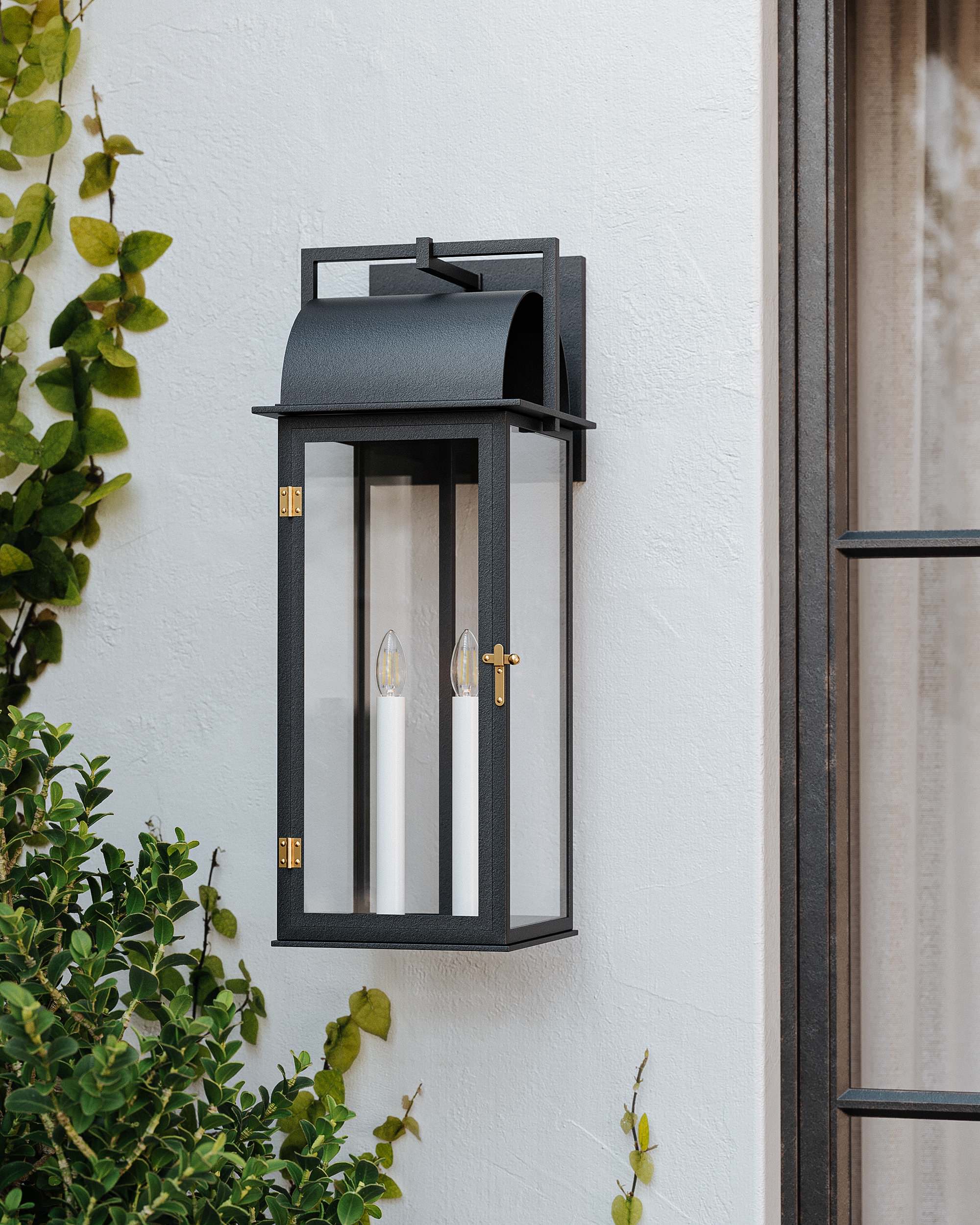 Classic lantern-style lights with a modern twist are super popular both indoors and out, and they’re offered in pendant, sconce, portable and plug-in designs. This 24½-inch-tall Arteriors Corbin outdoor lantern is a chic example of a plug-in style coated with marine-grade enamel to withstand the elements.