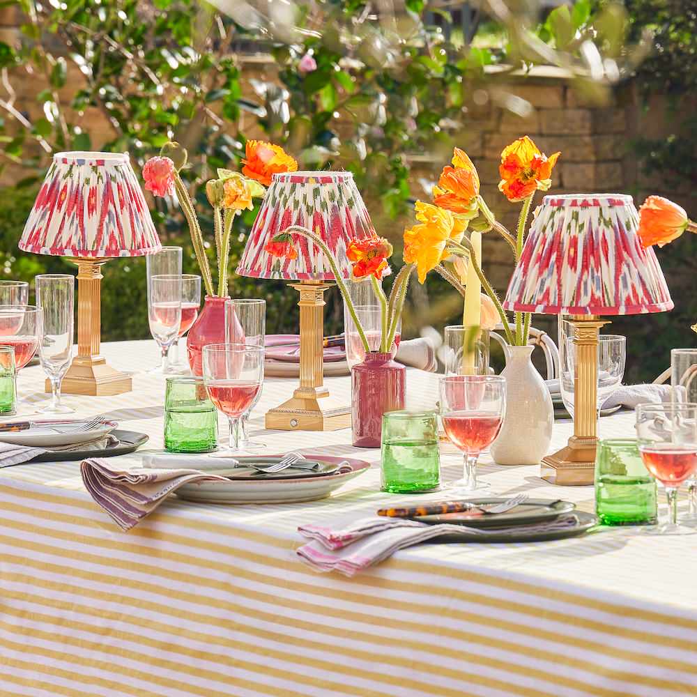The increased focus on outdoor spaces over the last few years hasn’t been limited to furniture. Lighting options have expanded too, not least thanks to improvements in rechargeable lamps. In some cases, the lamps are rated for outdoor use. But now there are also a lot of elegant rechargeable indoor lamps — like these brass Freya cordless table lamps from Pooky — that can simply be brought outside for an evening without the fuss of a cord.