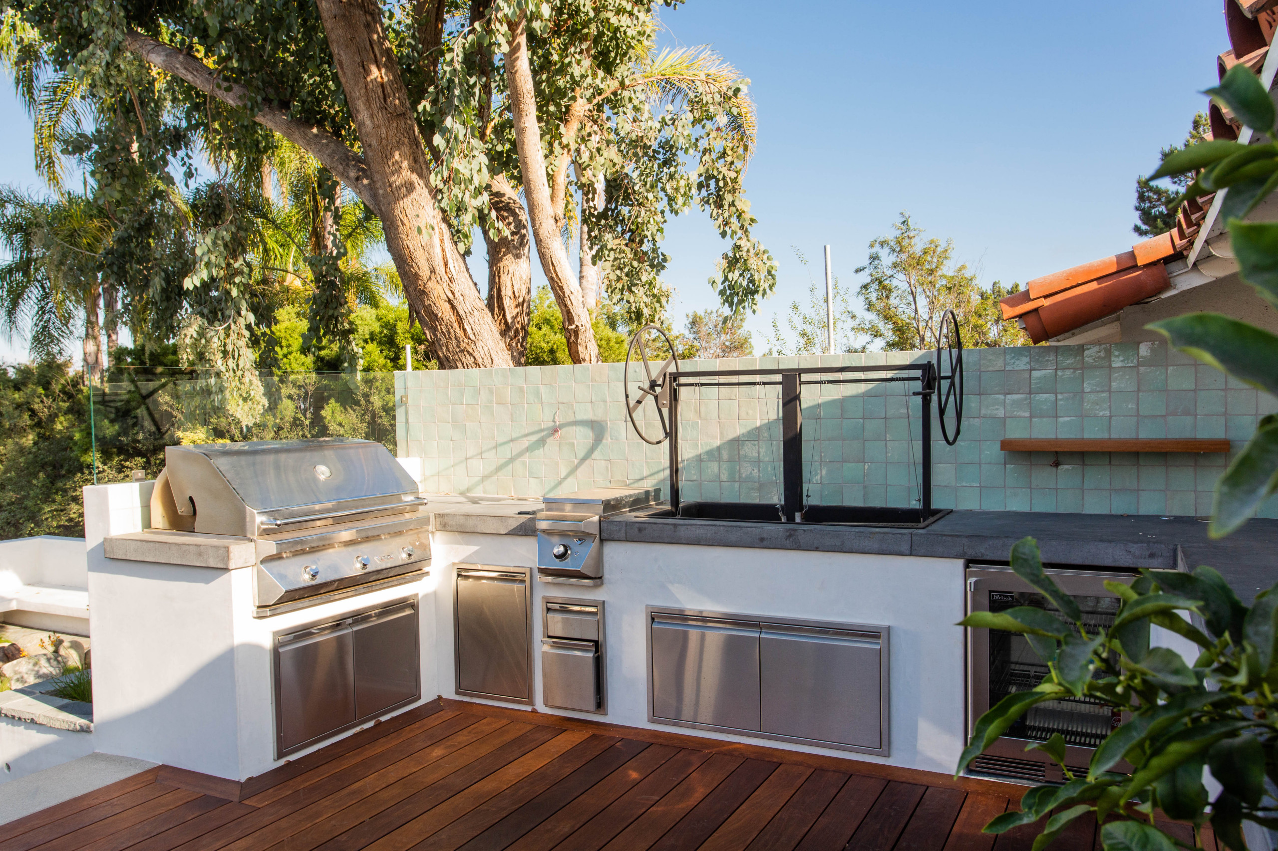 Danielle Killian, an associate of Ongwiseth’s, says that most cooks want to be at the center of the party, wherever it is happening. “Once one Los Angeles homeowner [we worked with] had a side-by-side grill and barbecue in the middle of her patio area and the ability to chat with guests, she rarely cooked inside, saving herself the cost of an interior kitchen remodel,” Killian says. Other homeowners, she adds, might prefer a little separation.