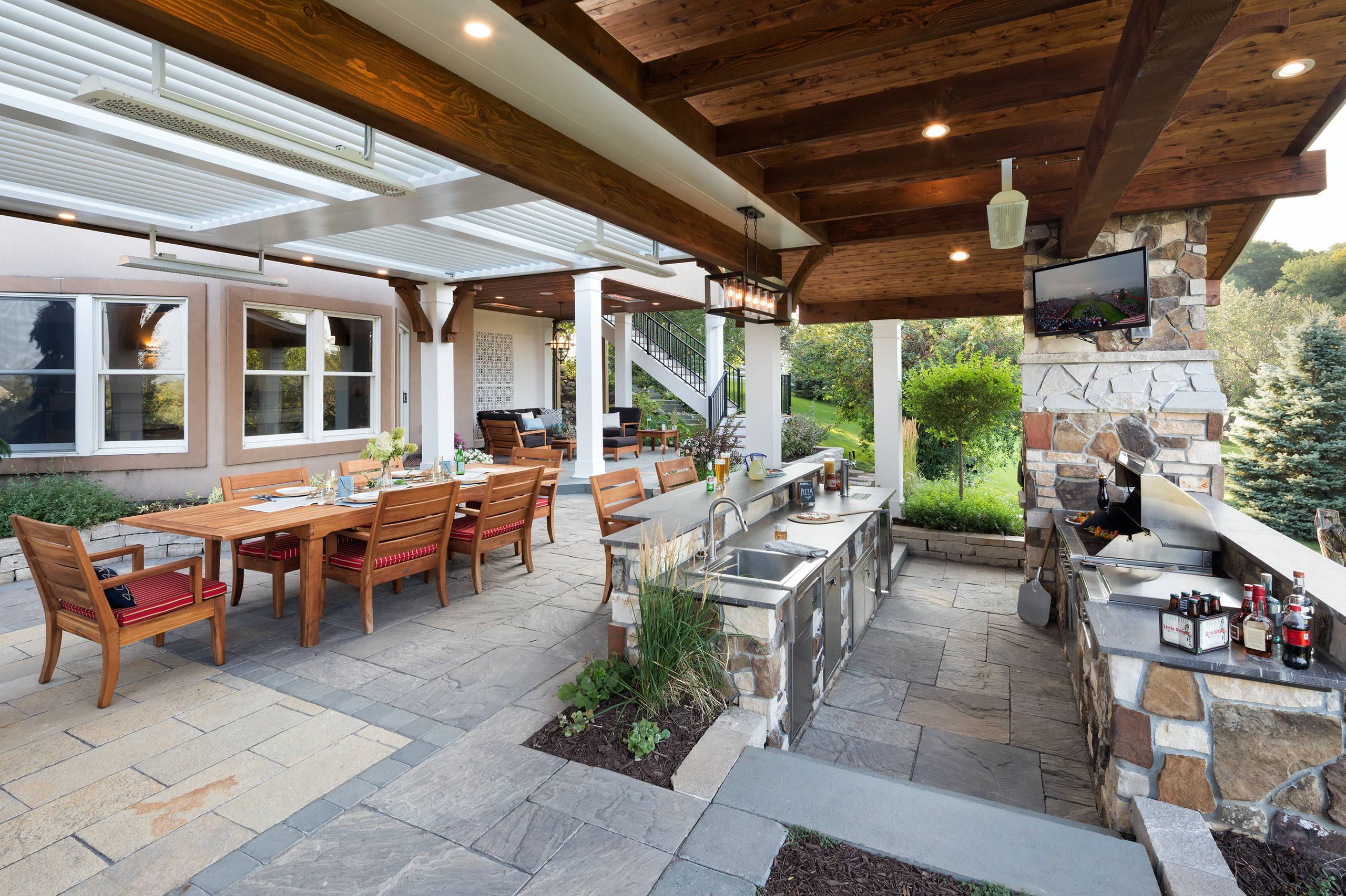 The best time to install many of these outdoor kitchen features is when you initially add an outdoor kitchen or during a remodel, when it’s easier to run gas, water or electricity lines. Don’t have the budget to outfit your kitchen with as many features as you’d like? Leave the design open to accommodate the future appliances and have your contractor run required lines to the future installation spots.