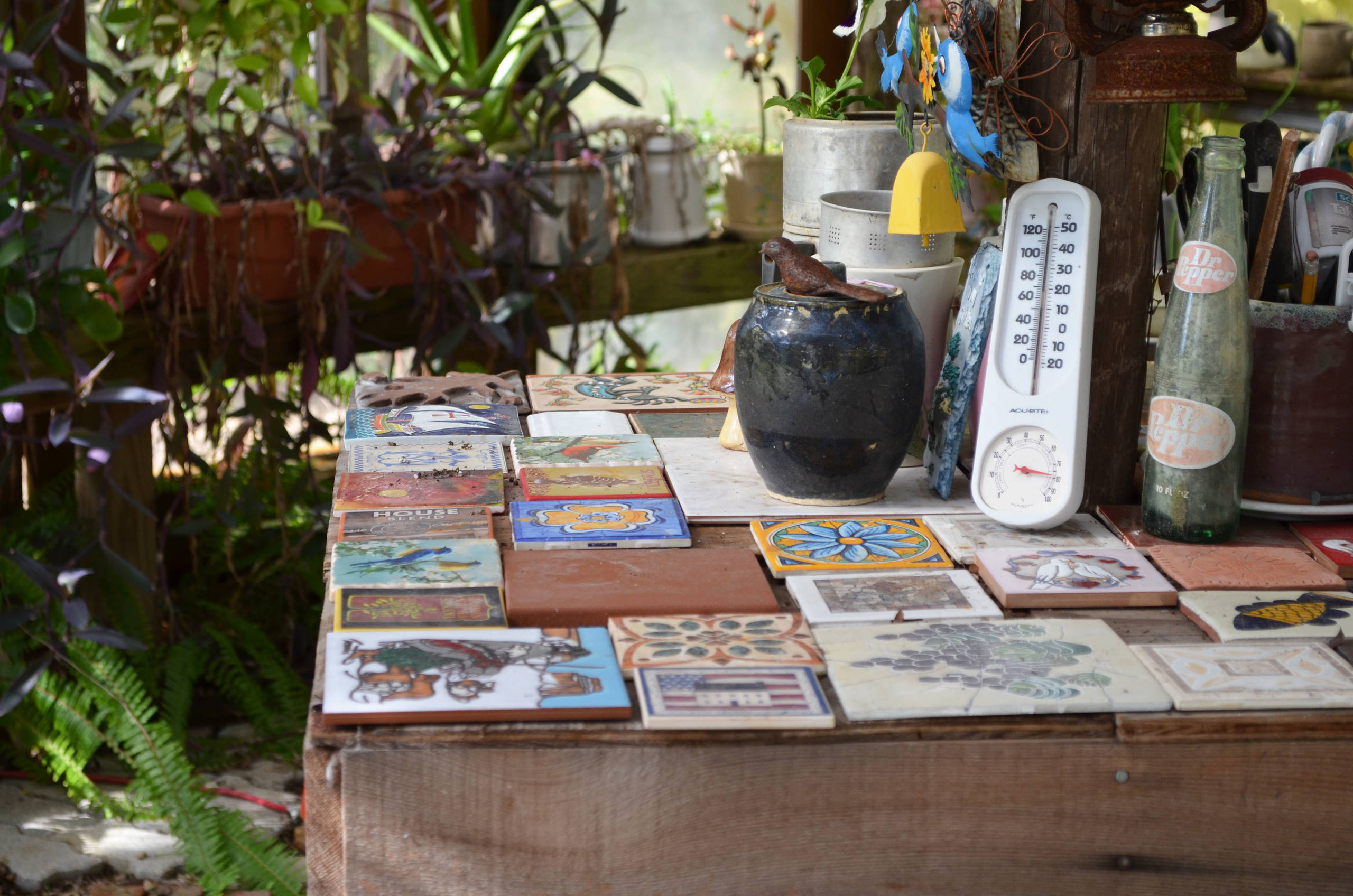 7. Benches and shelves. You can put your pots on the floor, and you will have to with the largest plants, but having them on a counter-level surface will make it easier to take care of your plantings.
