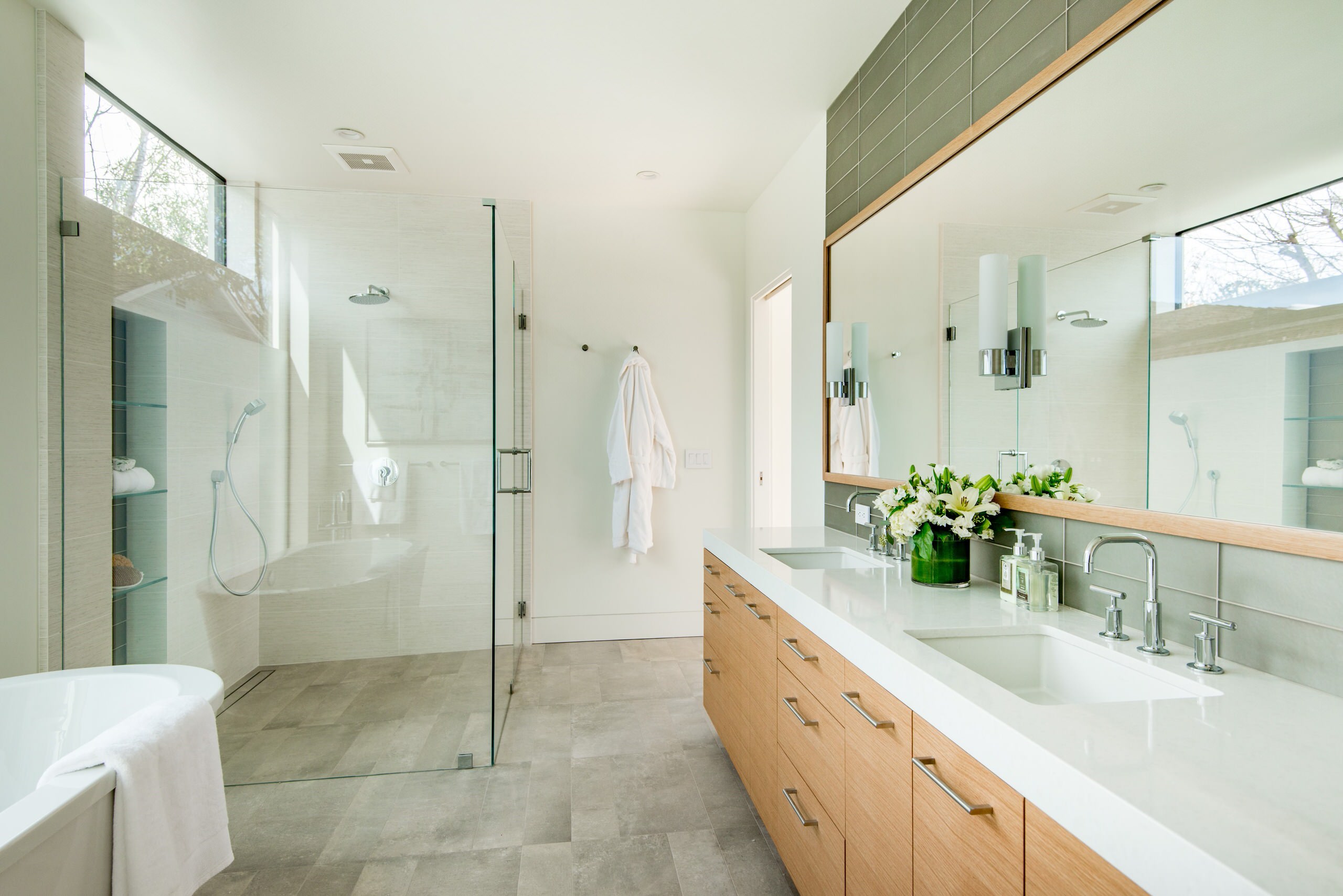 If you have the room, consider placing a freestanding tub within your shower. This wet-room concept creates a beautiful spa-like environment and an attractive visual statement.