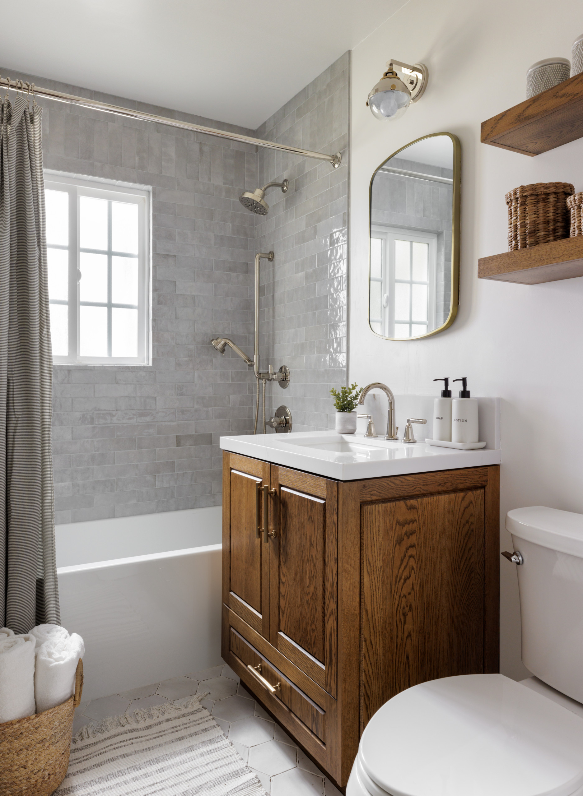 They might seem like small details, but accessories such as towel hooks, rings and bars can make a world of difference in how your bathroom functions. I always recommend installing a hook or bar right by the shower entrance — or even better, inside the shower, as seen here.