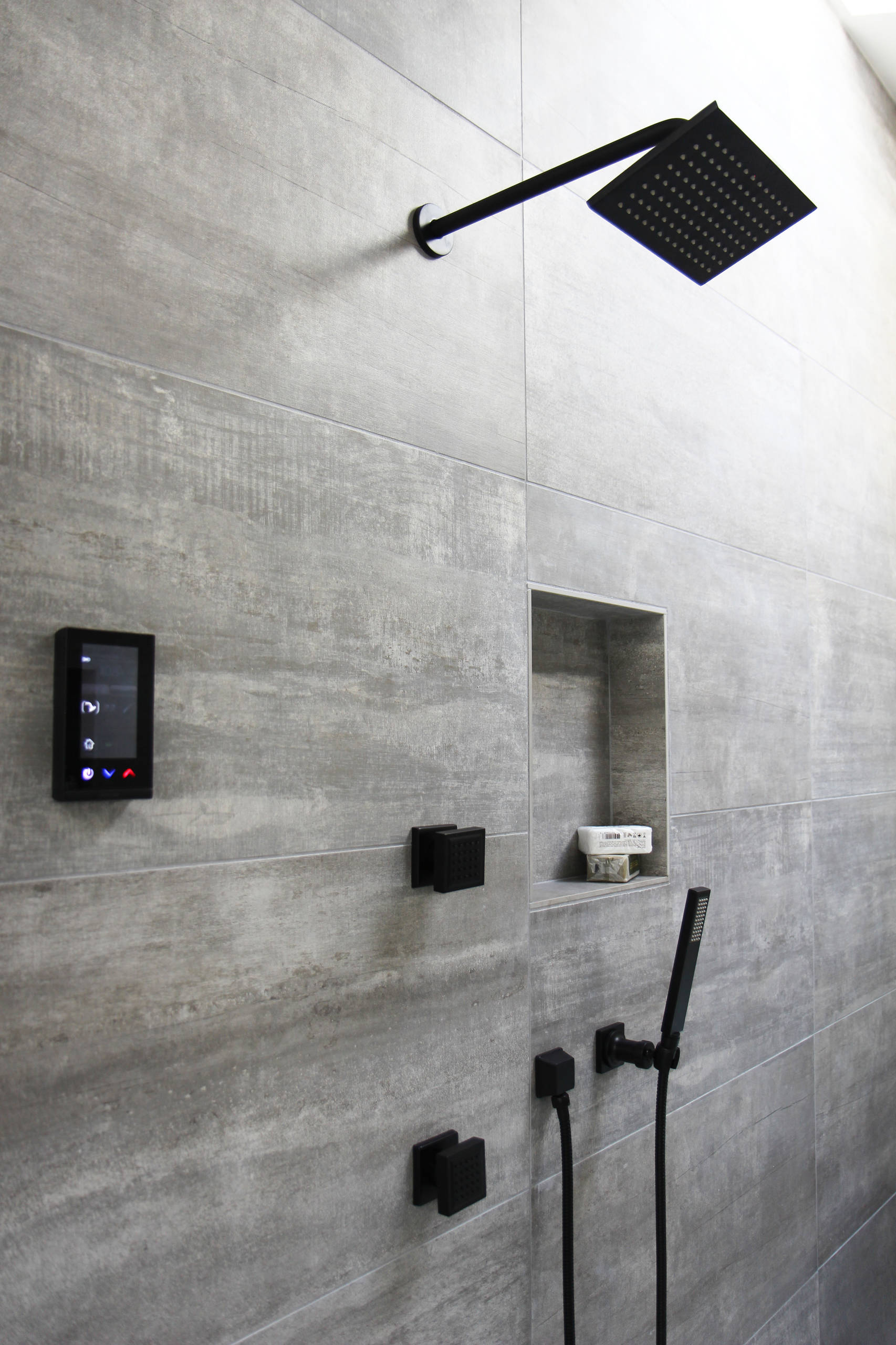 A niche to store shower products is always a good idea. Consider placement, orientation and size. Take inventory of your most-used products to ensure your niche is the right size.