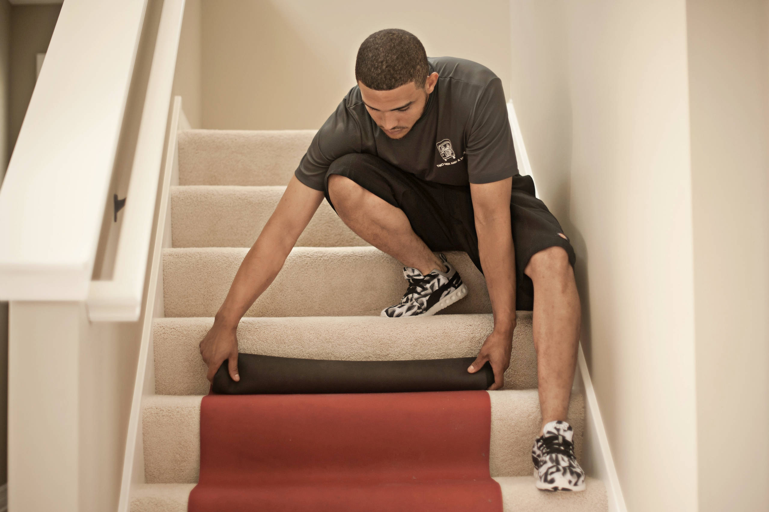 7. Protect floors and stairs with nonslip runners. There will be a lot of foot traffic in your home on moving day. Protect your floors and prevent slips and falls by rolling out nonslip runners in high-traffic areas. Your moving company may have reusable nonslip runners, or you may purchase nonslip self-adhesive plastic floor coverings to protect your floors in key areas. If you have a large area of flooring that you would like to protect (such as wall-to-wall light-colored carpeting) a self-adhesive plastic floor covering is probably your best bet.