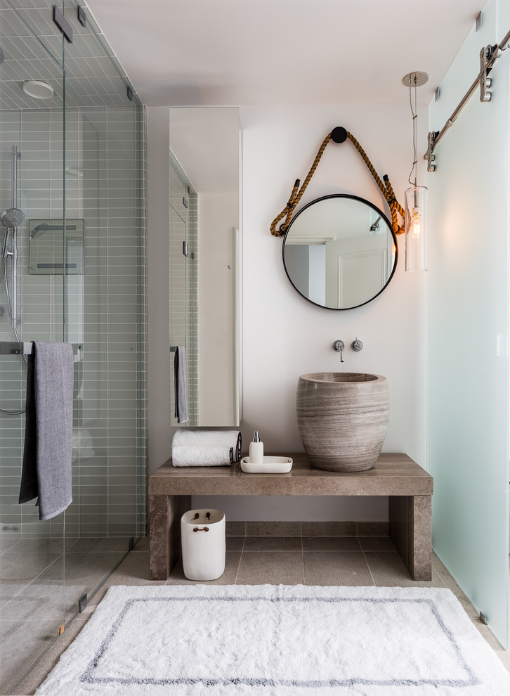 Notice how many spaces in this article have an eye-catching vessel sink to make the space feel more enticing. Switching away from the typical porcelain makes an evocative statement. Consider natural materials and imperfect shapes, like a carved wood, stone or blown-glass sink.