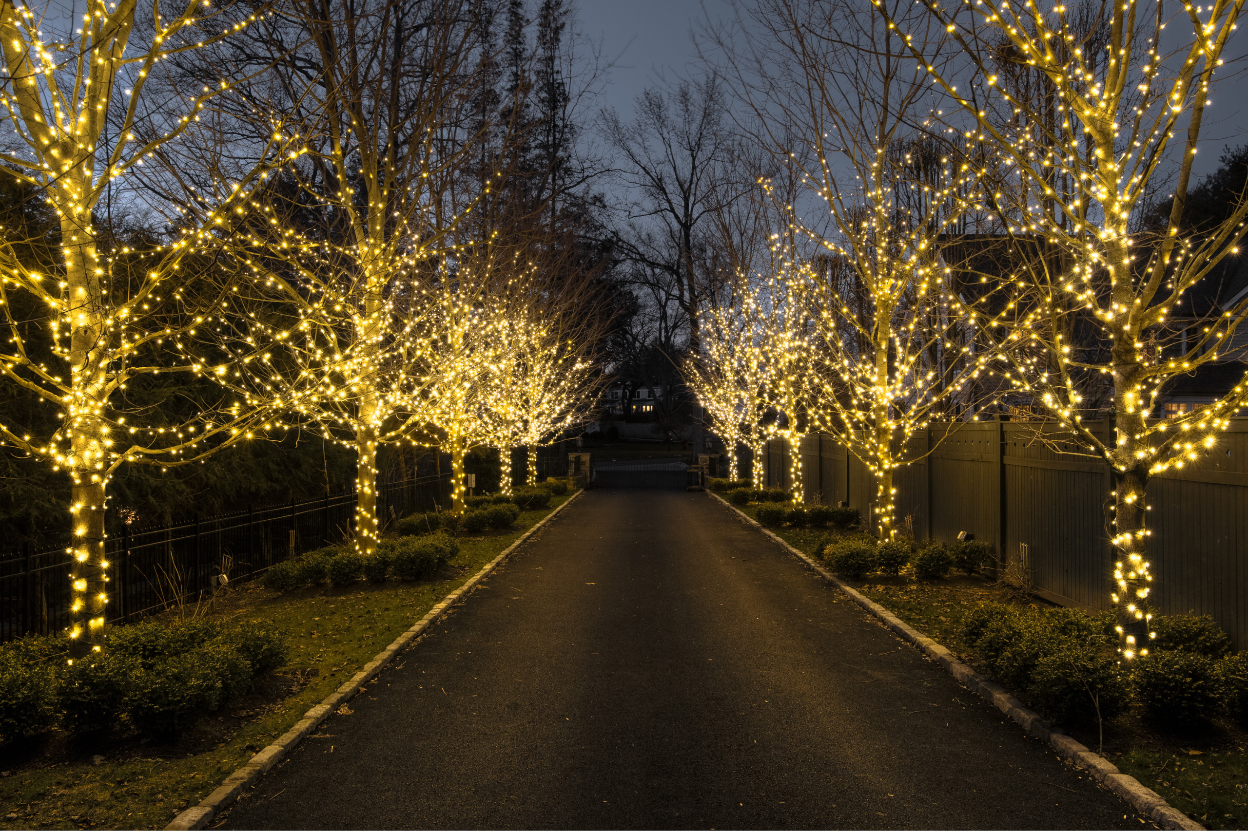 Pro tip: To get a professional look, Ryan Morici of Heritage Oaks Landscaping recommends swapping regular holiday lights for LED mini lights to save on power consumption. “The LED lights allow you to use many more lights per circuit versus the incandescent lights,” Morici says.