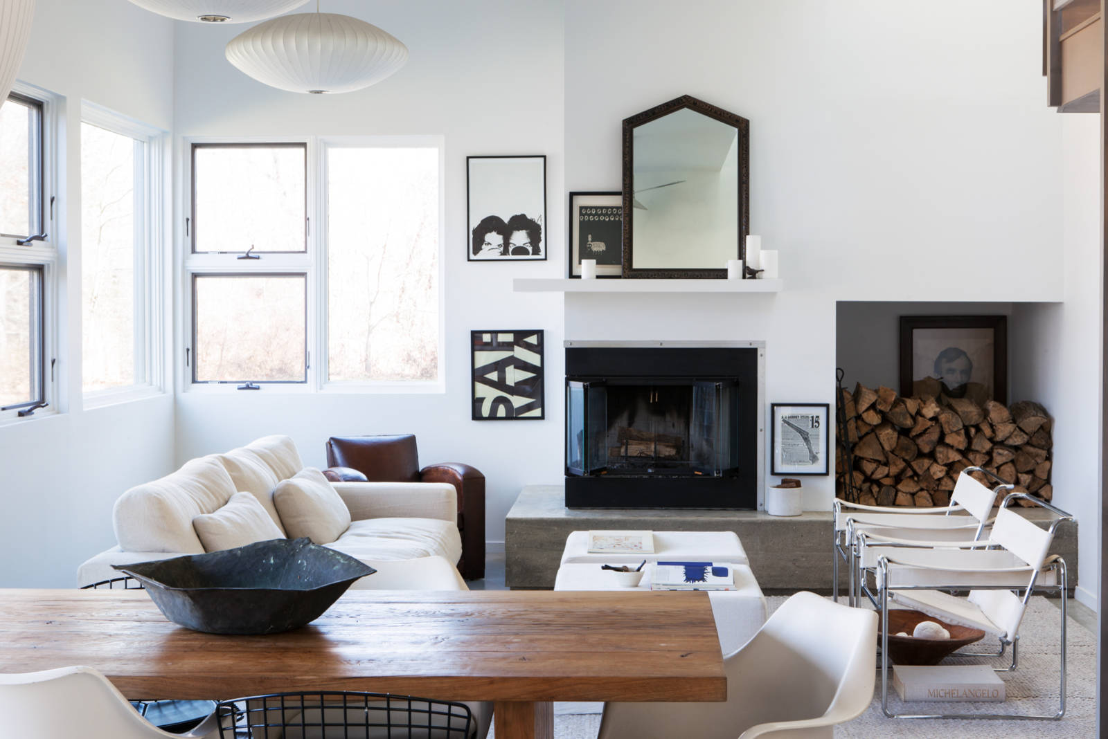 2. Firewood and art. The look of stacked wood works even in a modern setting. Feel free to get creative with it and add some art, or paint the ends of some logs in a bright shade to add graphic pops of color.