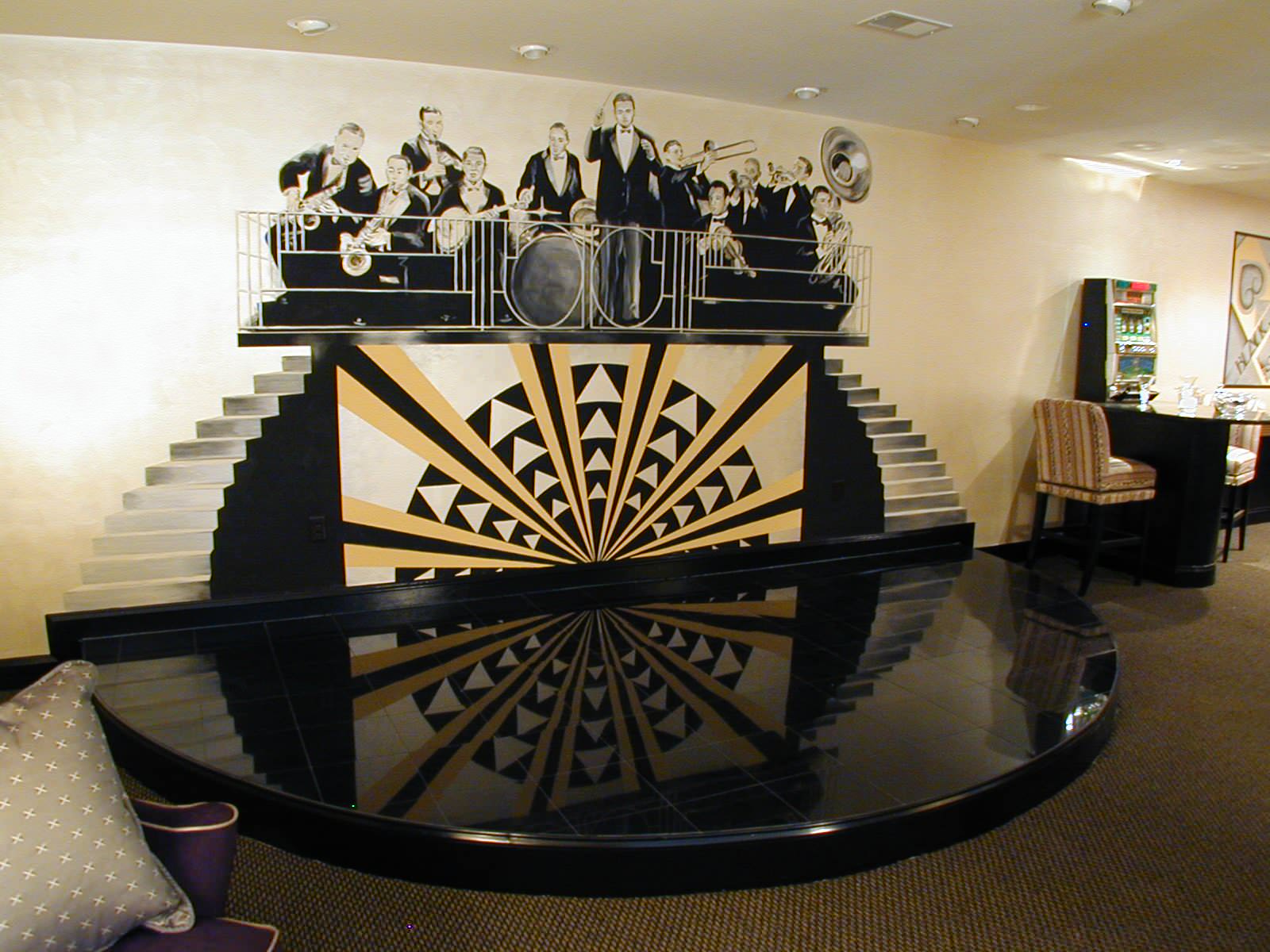 Go Hollywood with a slick black stage and a big band mural. It will put you in the mood to croon the night away.