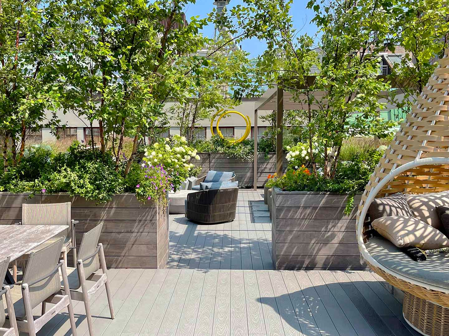 Algozzini also recommends adding a sculptural element to create a singular focal point. “It can thrive on a stand-alone basis in a planting bed, patio or lawn and elevate a landscape design,” he says. He adds that the key is to make sure that the piece is accurately scaled to its space, providing maximum impact.