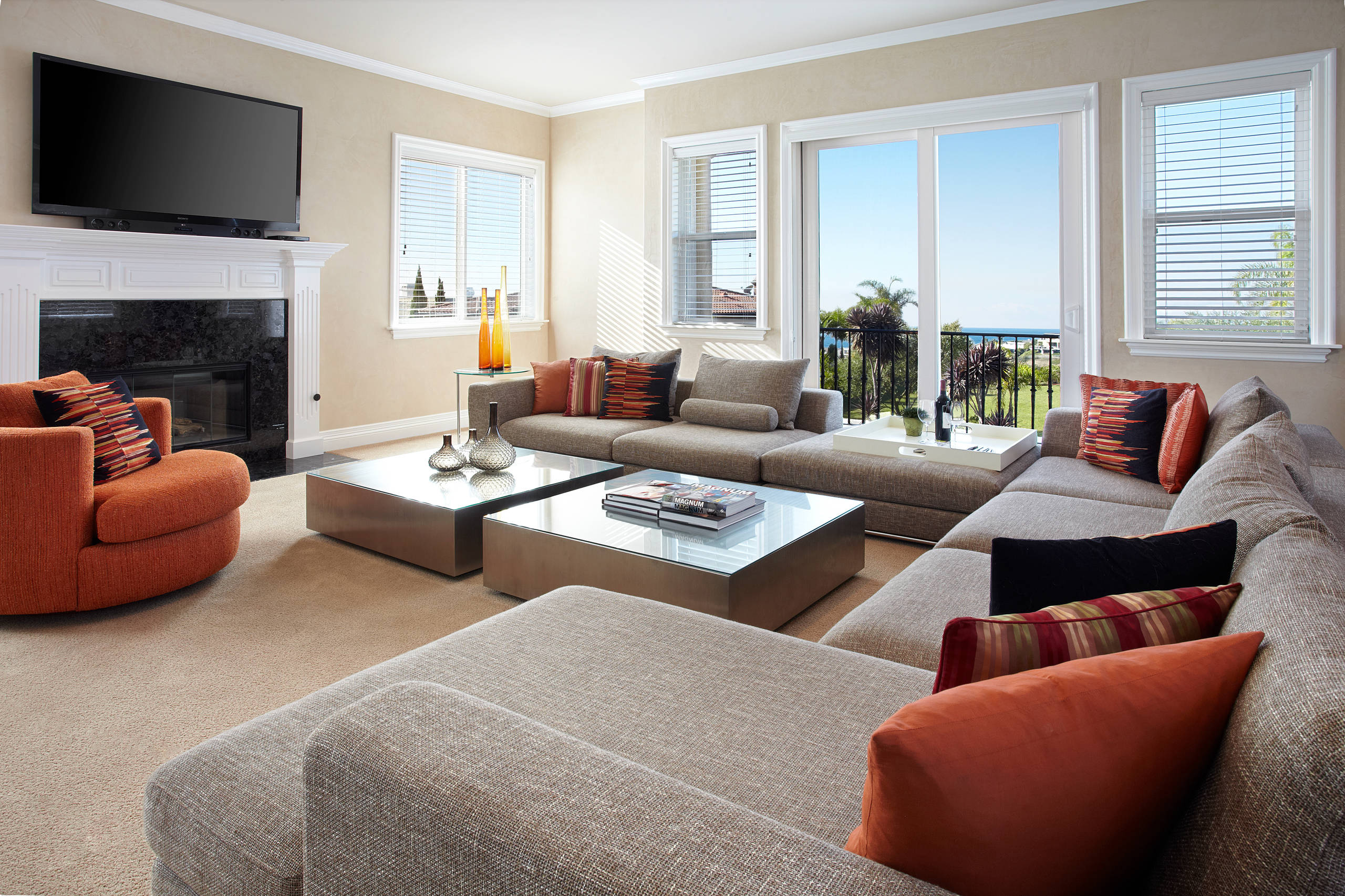 The third thing your designer needs to ask is, “What colors do you love?” For instance, if this is your living room, you definitely like cool neutrals with just a touch of color.