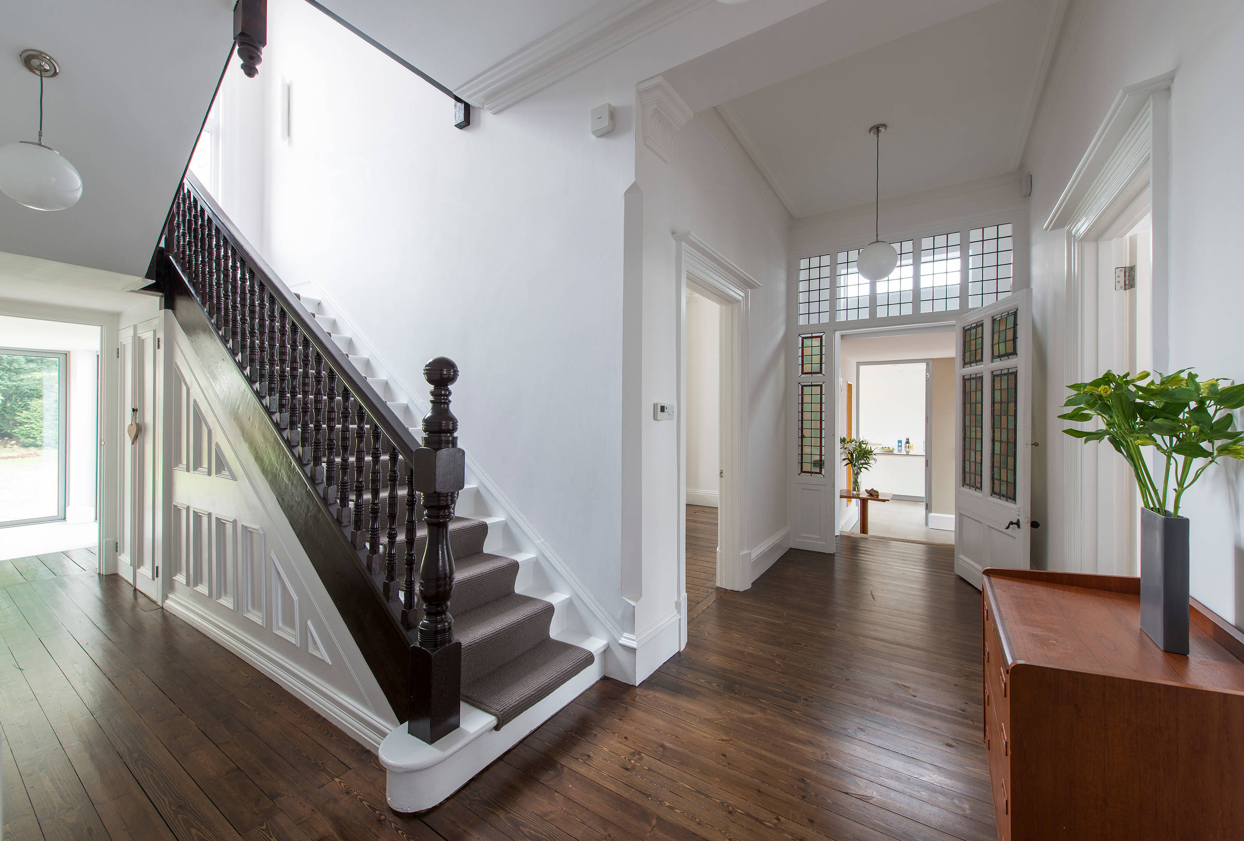 3. Celebrate stained glass. If you’re lucky enough to have beautiful stained glass windows, simple white walls will let them act as art and color.
