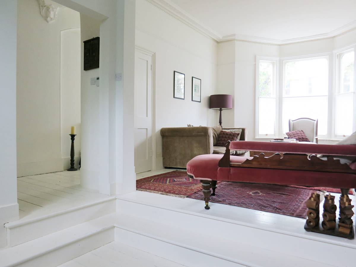 10. Break unusual room layouts into zones. Old homes built on quirky lots often have some unusual room layouts, and can have long, narrow spaces that seem hard to work with. Break a rectangle into multiple square zones for better functionality, using area rugs to define zones visually and open-sided furniture like benches to bridge multiple adjoining seating areas.