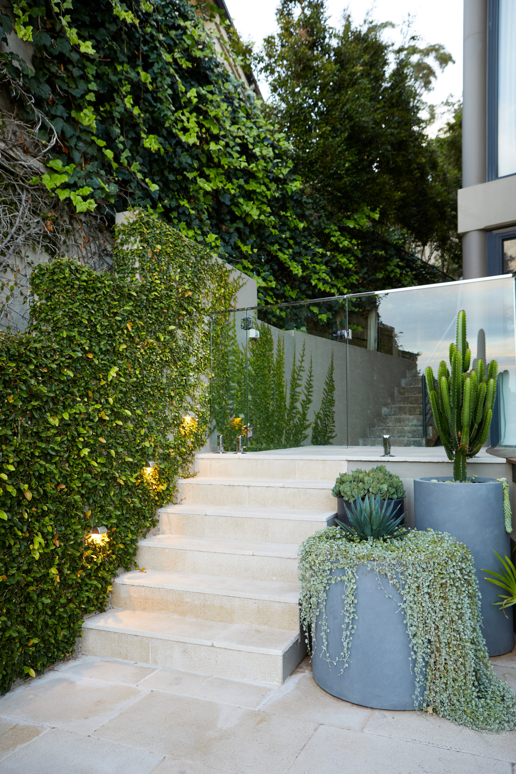 “Generally, outdoor light fittings should be hidden, with an emphasis on the illumination, not the fixture,” Cameron says. There are exceptions, she adds, including sculptural and string lights.