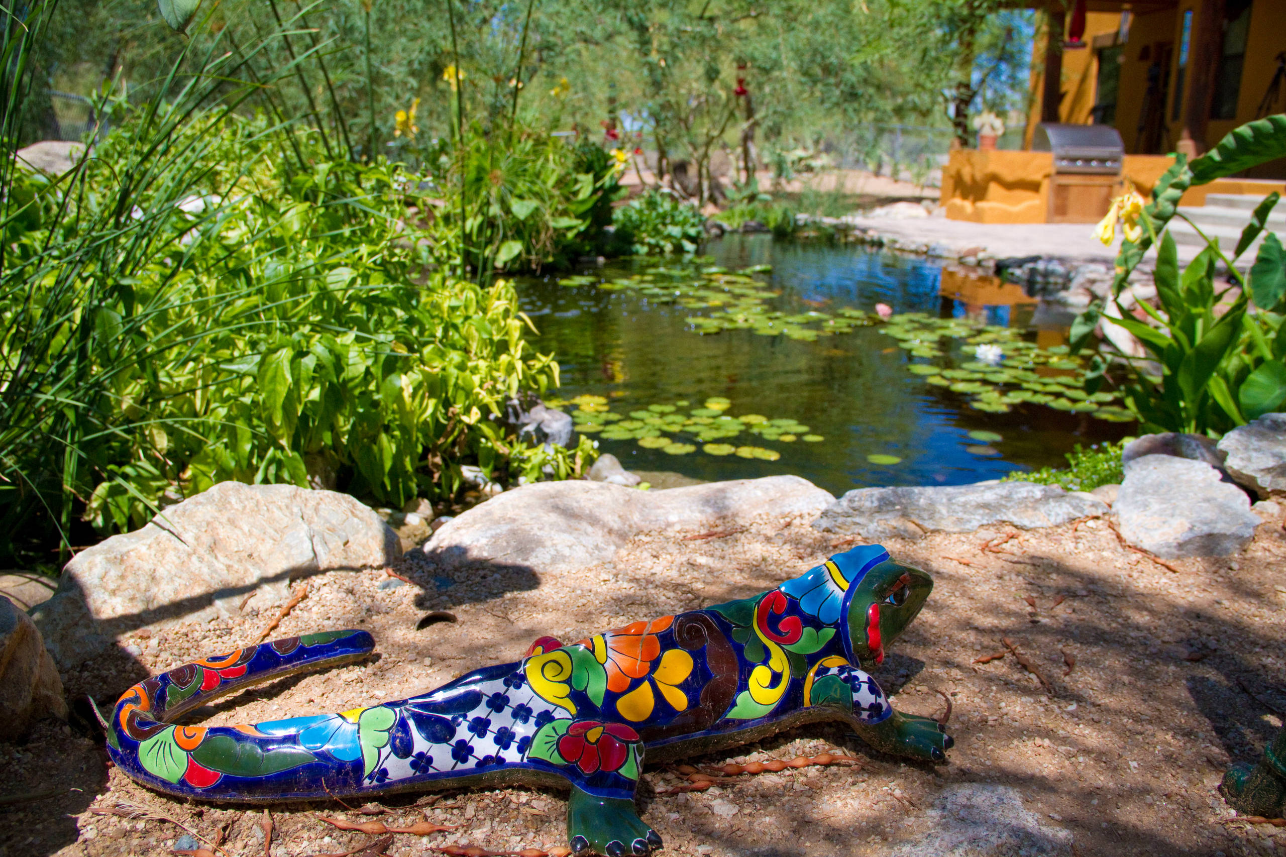 10. Garden art. Colorful sculptures and statues tucked into hidden nooks and crannies throughout the garden delight children. Kids can also get involved in decorating the garden by painting rocks and making plant markers.