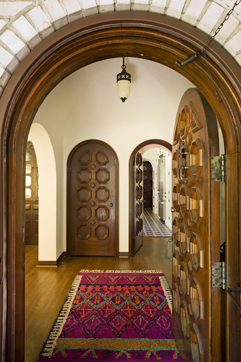 An ancient detail that creates a load-bearing opening, arches are elegant and style defining. Here, in addition to the interior arches, each door is heavily detailed with pattern, creating further interest.