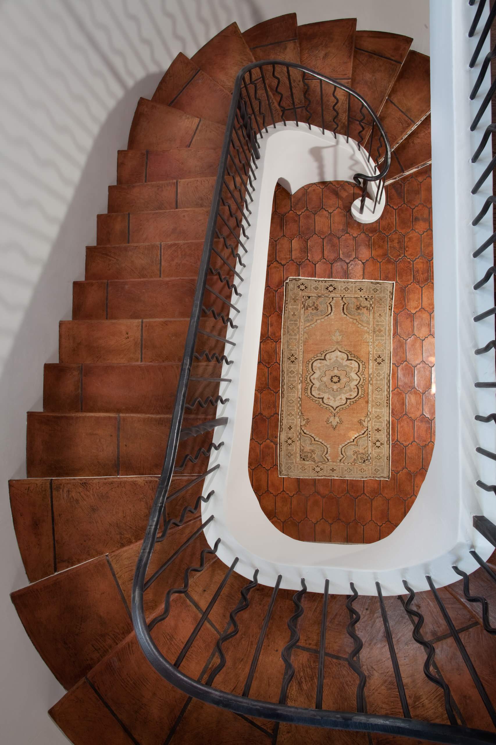 Risers covered in Mexican tile are both eye catching and practical, as the tile protects the risers from scuffs and scratches.