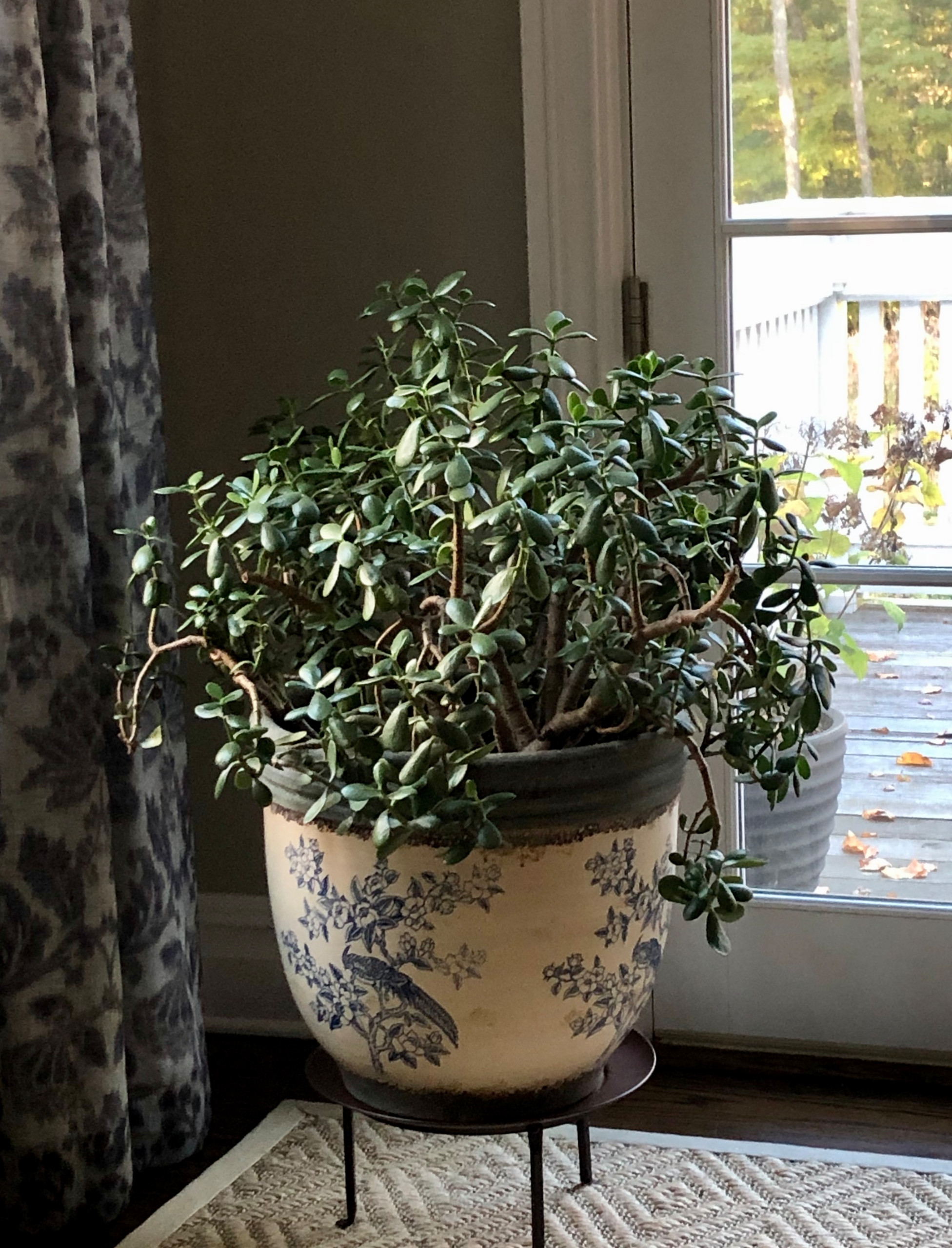 4. Jade plant. Jade plants (Crassula ovata) have been used as houseplants for years. They’re sturdy, with plump green or variegated leaves that form a canopy over a thick trunk. Give the plant room to grow, as it can reach 4 feet tall.