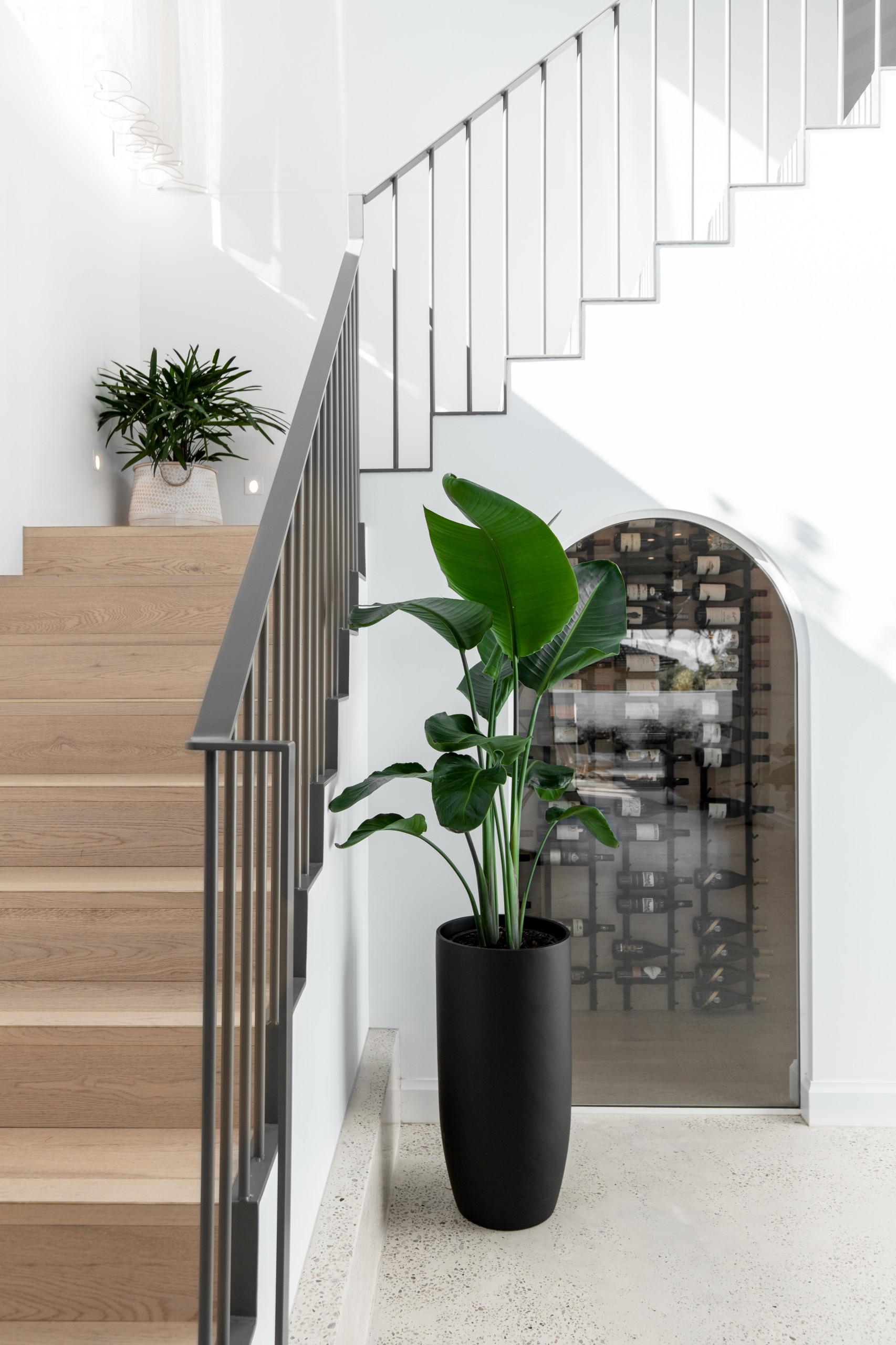 3. In this elegant home on Australia’s Gold Coast, Lumi the House and Inspired Built designed a graceful arched entry to an under-stairs wine cellar.