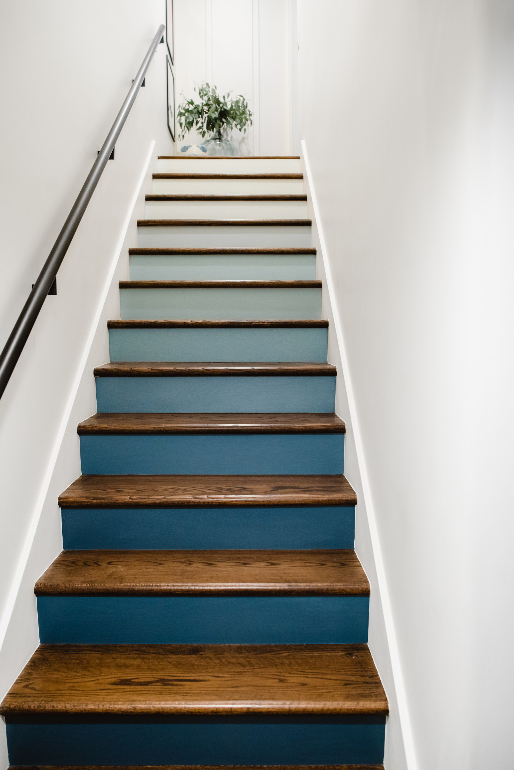 Paint them a crisp white, then add shades of a single color to the treads; or add numbers, words or wallpaper to the risers. If you have a carpeted staircase, update it with a fresh runner.