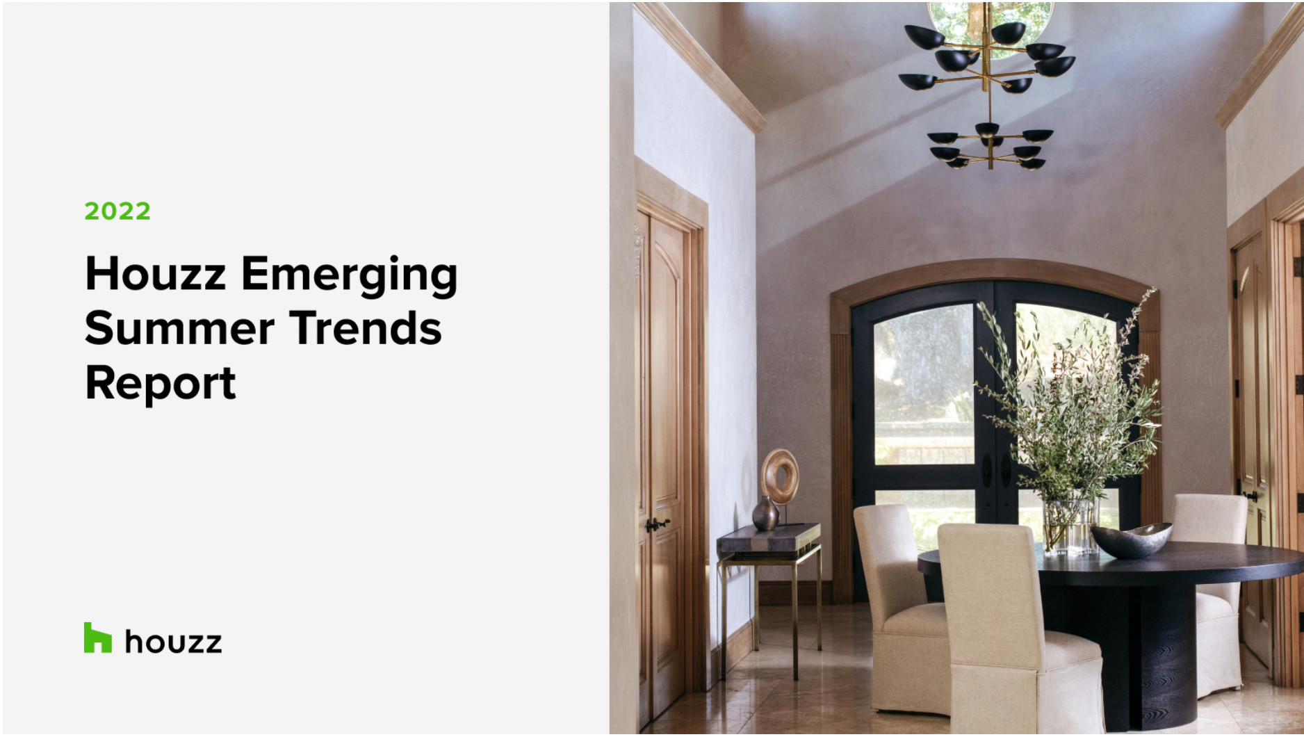 Barn homes evoke verdant pastures, wide-open spaces and a simpler way of life. All of which seem to be an aspirational goal according to emerging searches on Houzz. The term “barndo” has grown 2.5x, compared with the same period last year. For those who may not be looking for whole-home conversions, searches for “barndominium kitchens” have also more than doubled. Common characteristics include clean lines, soaring ceilings and open floor plans. Maximizing SpacePeople are making the most of their homes with searches for space-saving tips and ways to make their rooms appear larger. Searches have doubled compared with the same period last year for “stacking washer dryers” and “hallway cabinets”. Design aesthetics that can go a long way in making your space look bigger are also seeing an increase, like “acrylic counter stool” and “open tread staircase”, which people searched for more frequently in Q1 2022 versus Q1 2021.Pandemic-Inspired TrendsIf you were inspired to adopt a pandemic pup, it may come as no surprise that searches for “dog feeding stations” are up 55%. And people may be searching for “chair seat covers” more frequently for a fur-friendly design. We’re also seeing an uptick in searches for “computer armoire” and the newly coined term “cloffice”, which transforms a closet into a workstation for smaller abodes. As many homes became multi-generational during the pandemic, we’re seeing increased searches for features that may be helpful for accessory dwelling units (ADUs) like “small single-wall kitchen ideas” and “windowless bathrooms”. Bidets don’t seem to be going anywhere since the “great toilet paper shortage” of 2020, with searches continuing to inch up compared with the previous year.Download the Full Report