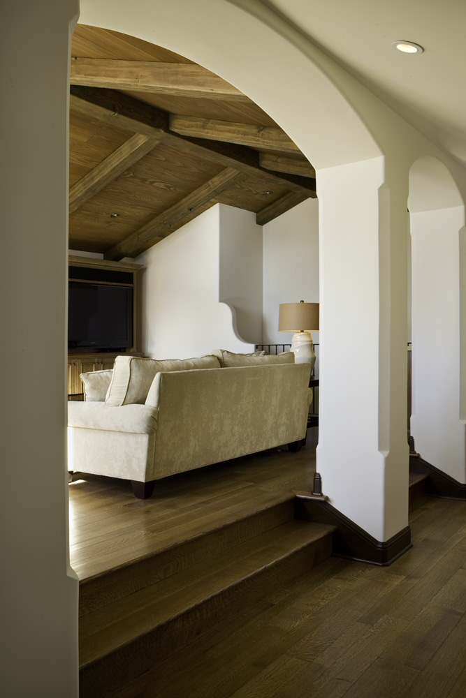Use a row of columns to provide rhythm. The eye takes comfort in patterns. Use columns, and even beams, to create a sense of rhythm in an otherwise muted space.