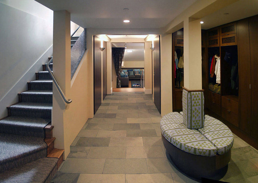 Clad a large column in stone. The imposing presence of the masonry column here reminds you of its purpose, while at the same time introducing a tactile material that contrasts with the rest of the soft interior. This could be a good idea for bringing some of the material from the home’s exterior inside.