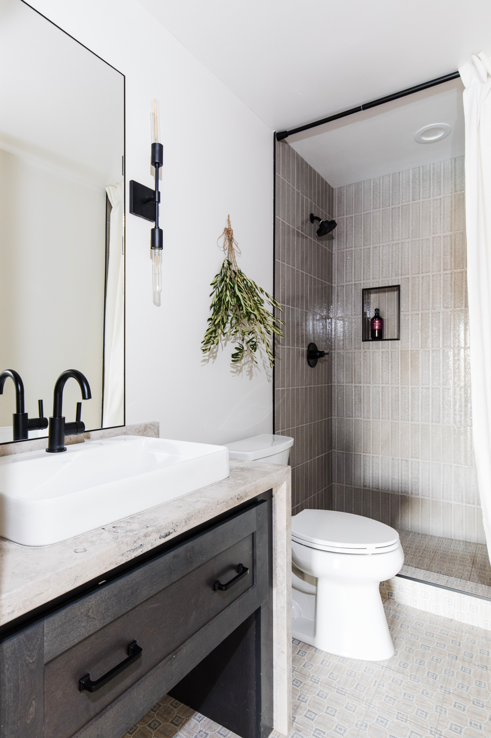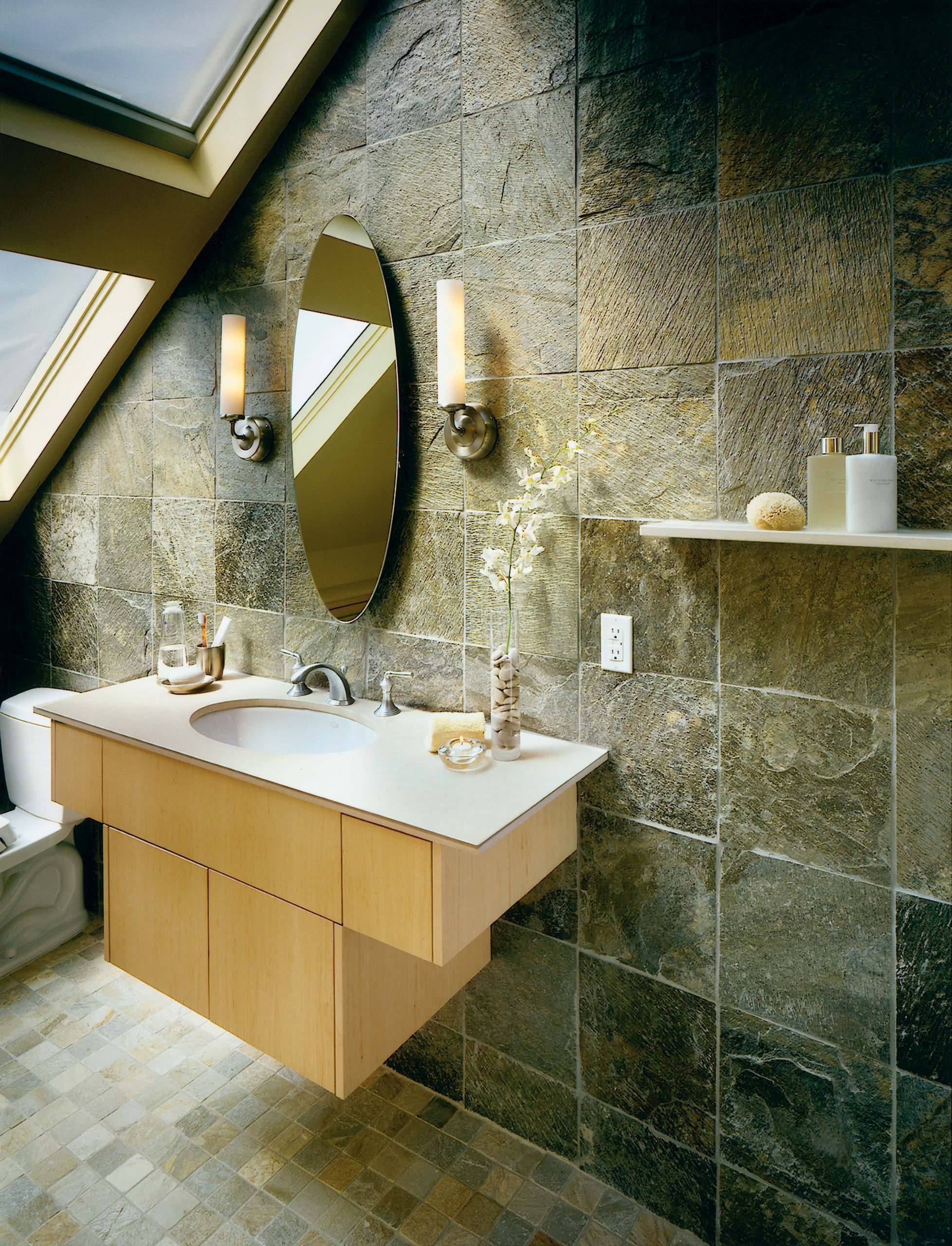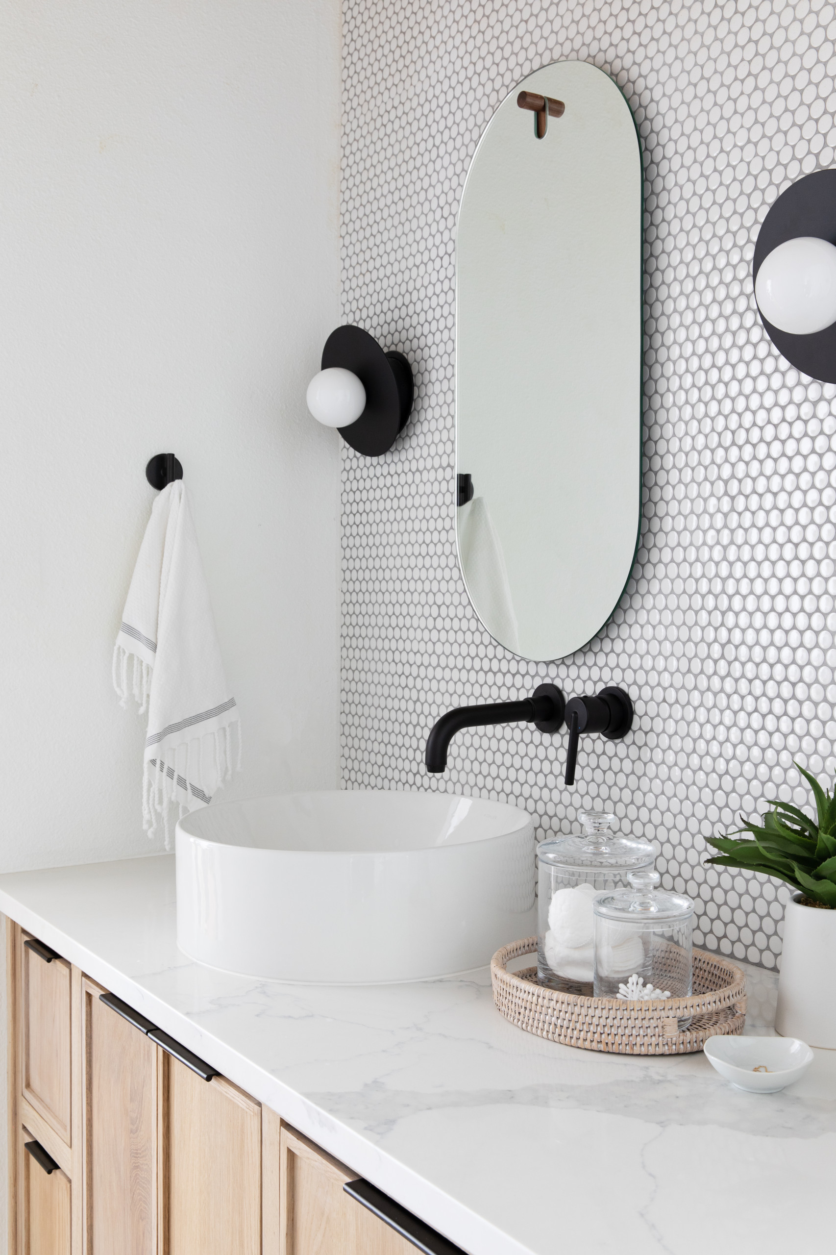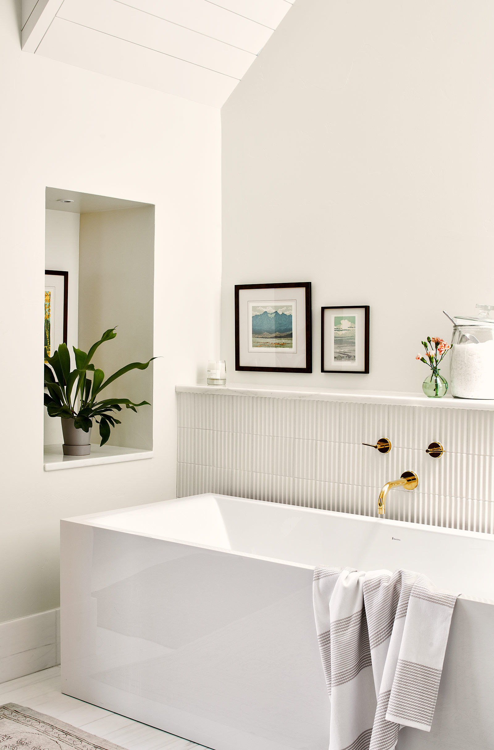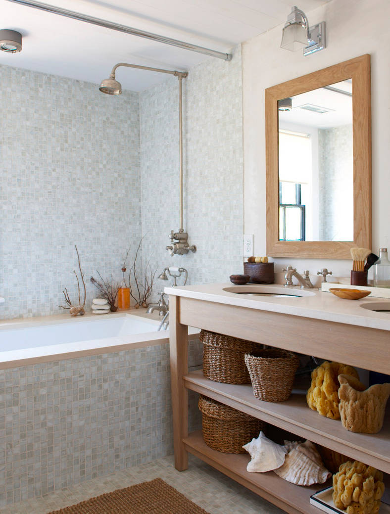 Add a layer of sensory texture to a classic bathroom with tiles and wall surfaces that are wonderful to touch