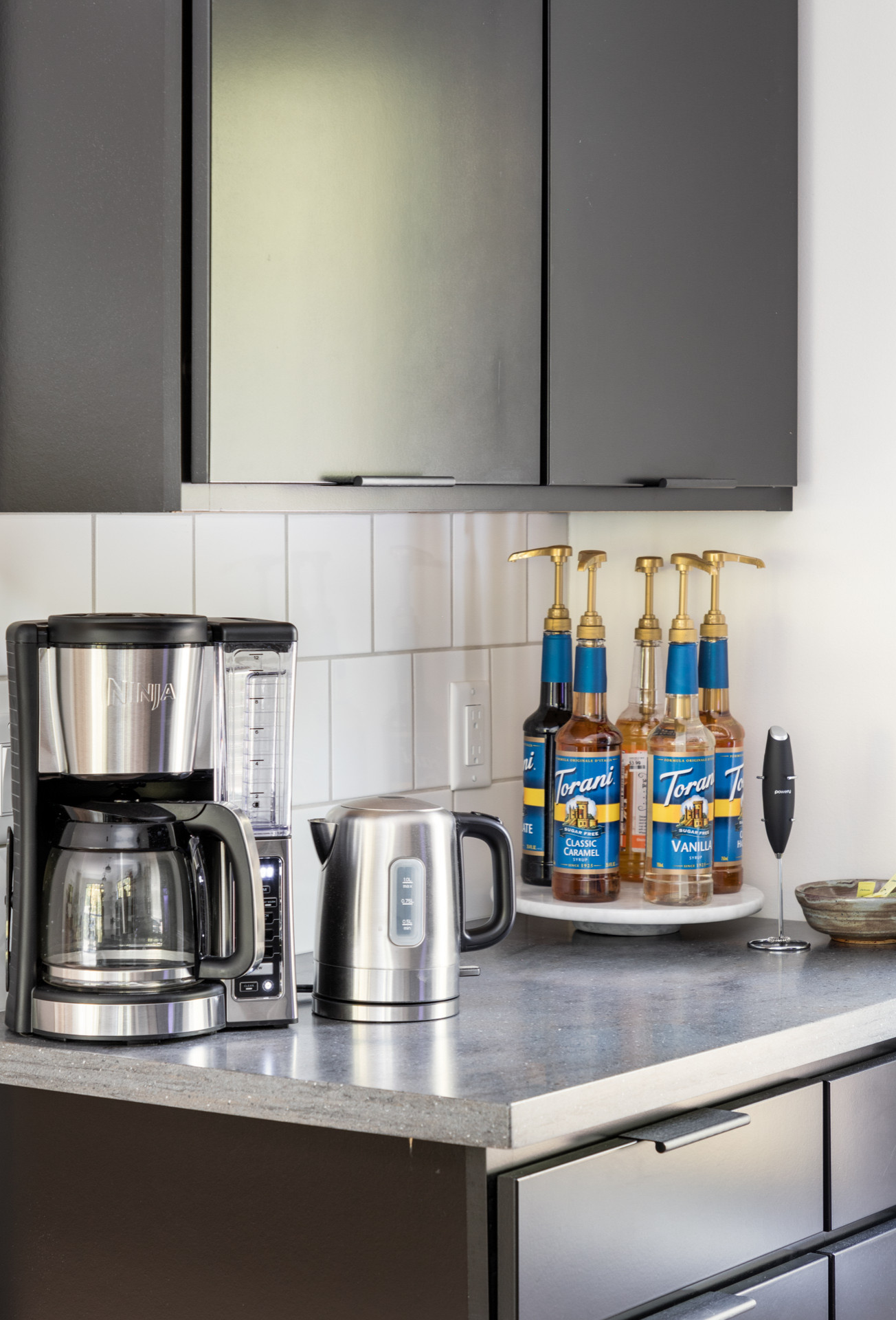 In Michigan, Sara Vanderstelt With Creative Kitchens corralled syrup bottles with a lazy Susan, turning them into a fun countertop feature.
