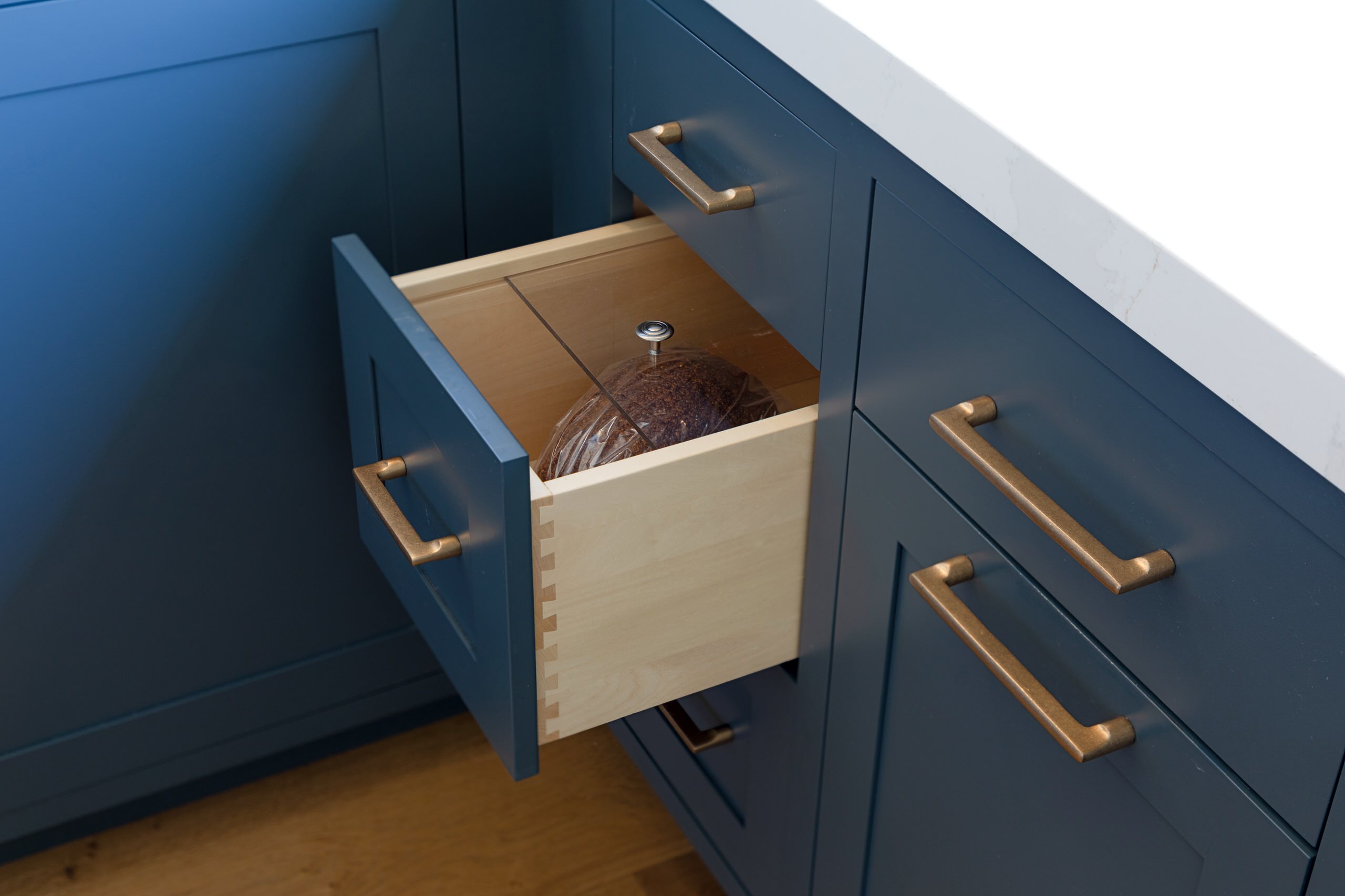 The Secret Drawer custom-built a bread drawer for this country kitchen in England.