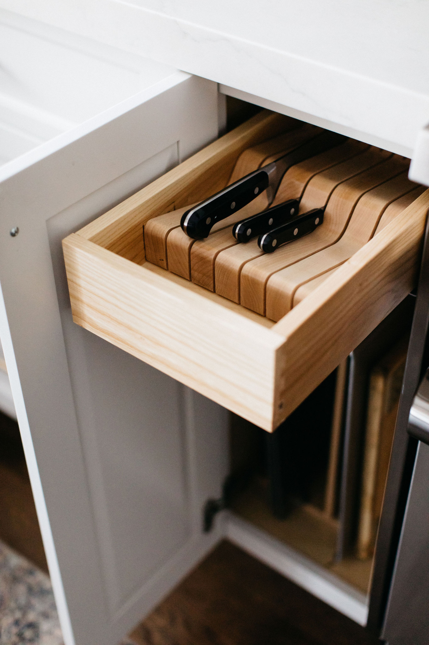 A knife drawer isn’t especially cutting-edge, but it’s especially smart when paired with a divided lower cabinet for cutting boards, as in this Chicago-area kitchen uploaded by Forest Glen Construction.