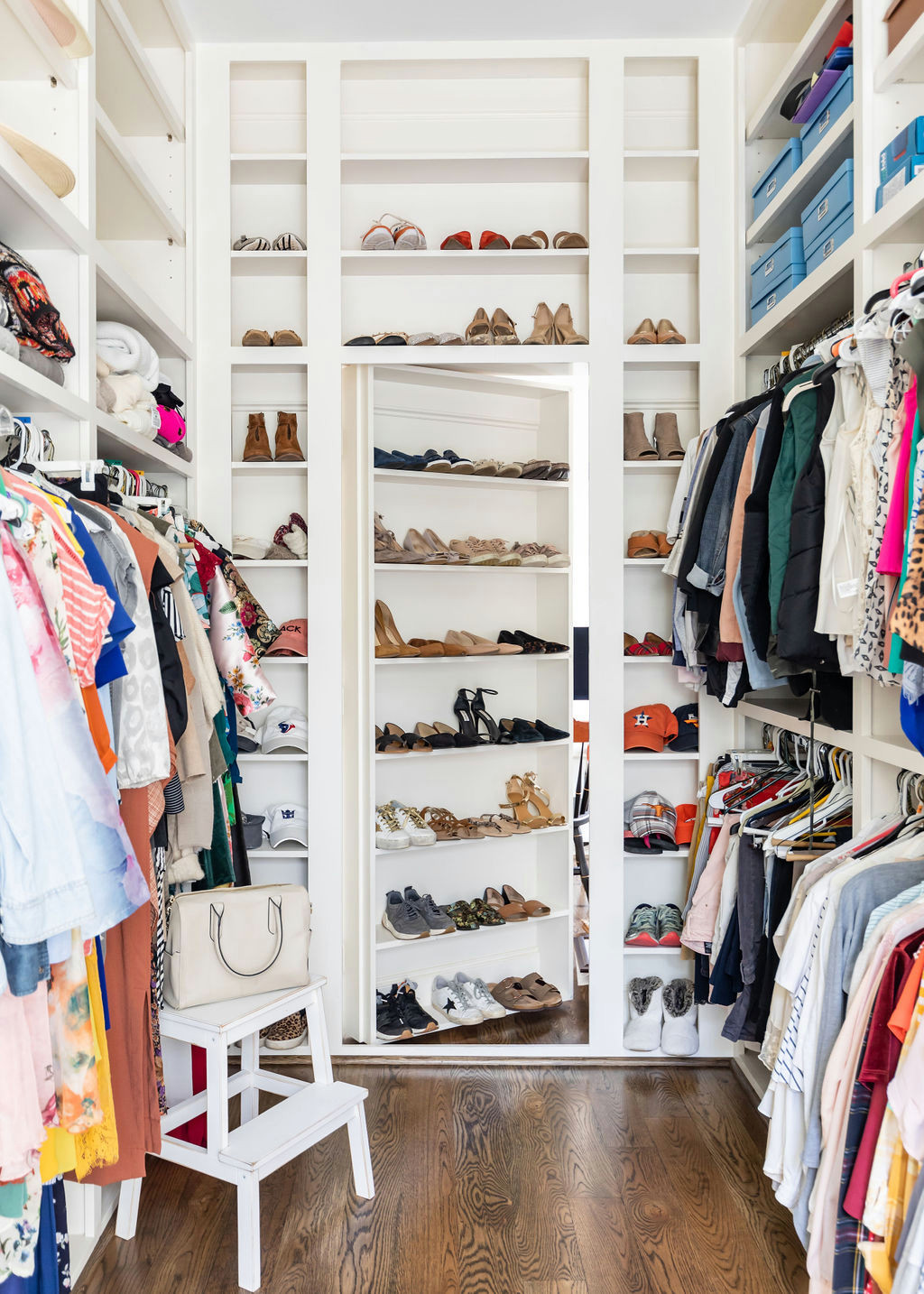 Where can you work from home where you won’t be interrupted or distracted? How about in a hidden office? In this Houston closet, Sneller Custom Homes and Remodeling disguised the entrance to one with a shelf full of shoes.