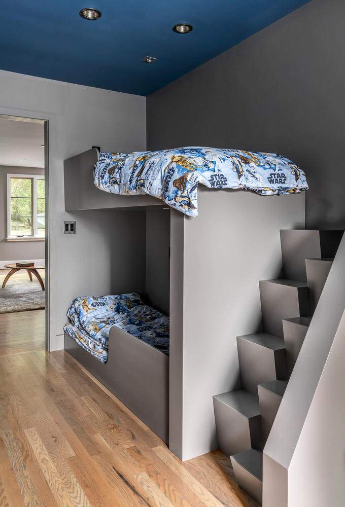 You can be practical and use the cavity beneath a staircase for storage. Or you can turn it into a secret hideout full of stars for a wee one, as James Dixon Architect did in this New Hampshire home.