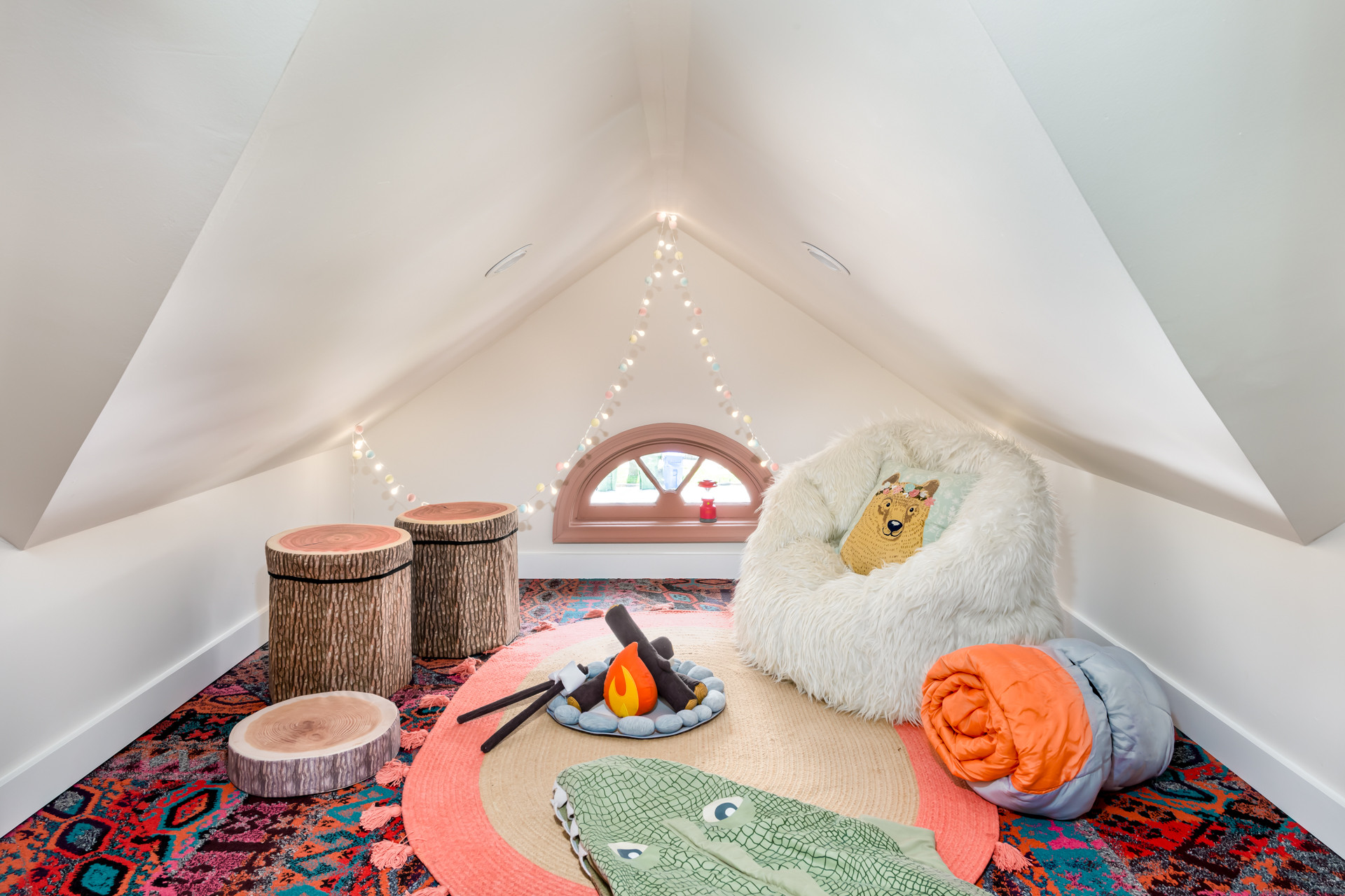 Behind a sweet reading nook, it created a campsite in the wilderness complete with a campfire and critters.