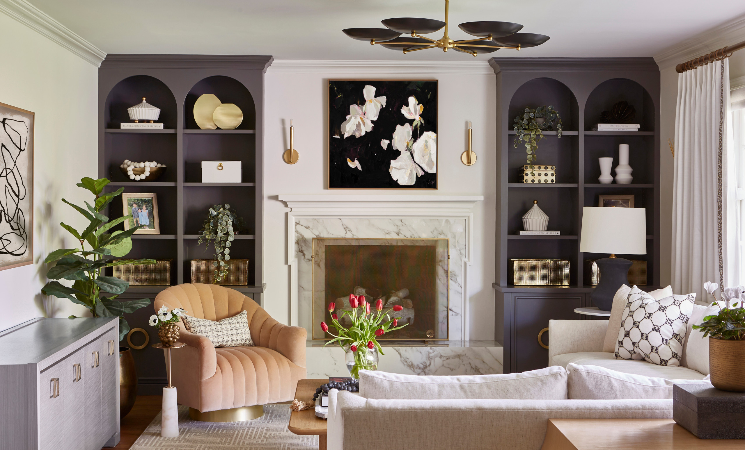 This Austin, Texas, living room by Kelley Design Group — one of the most-saved living room photos of 2025 — features a zoned built-in that seamlessly combines a fireplace, TV, arched display niches and bench seating for both storage and styling.