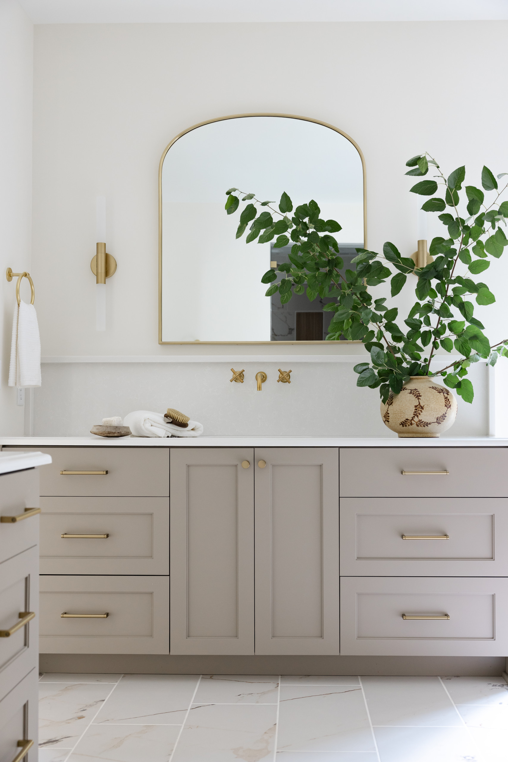 Sleek and streamlined, flat-panel (or slab-front) cabinets and vanities are gaining ground, even in traditional- and transitional-style rooms. Smooth, unframed doors and subtle edge profiles give cabinets a custom look that feels modern yet refined. They’re also easy to wipe clean. Warm wood tones, matte finishes and minimalist hardware keep the style comfortable rather than stark. Flat-panel cabinetry ranks as the second-most popular style after Shaker, according to Houzz research, showing that simplicity never loses its appeal.