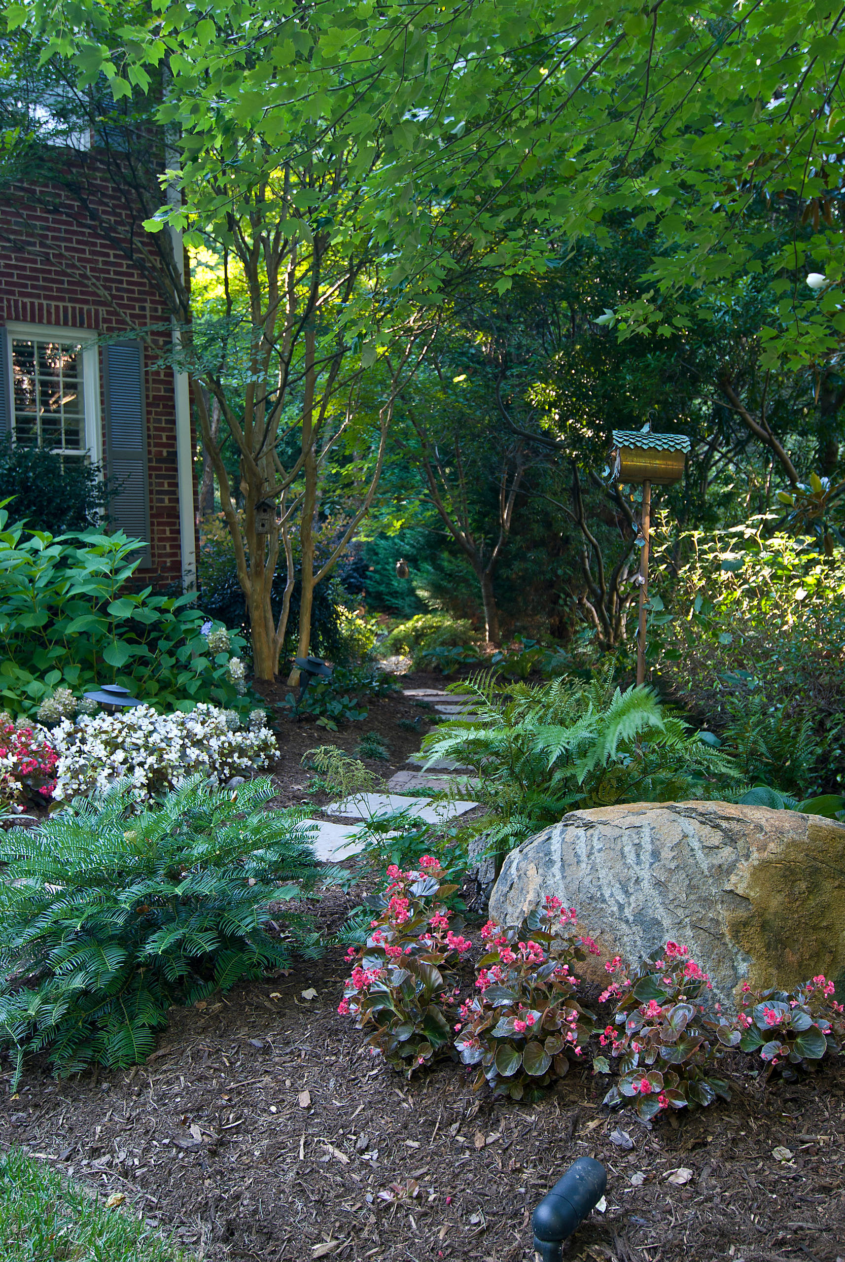 A meandering garden path, however, can be much narrower, as the intention is for guests to follow it to discover what lies ahead. “If you want someone to linger,” says Ayers, “curve the path around focal points, like a tree, boulder or berm of land. The most engaging paths curve around points of interest rather than arbitrarily twist and turn.”