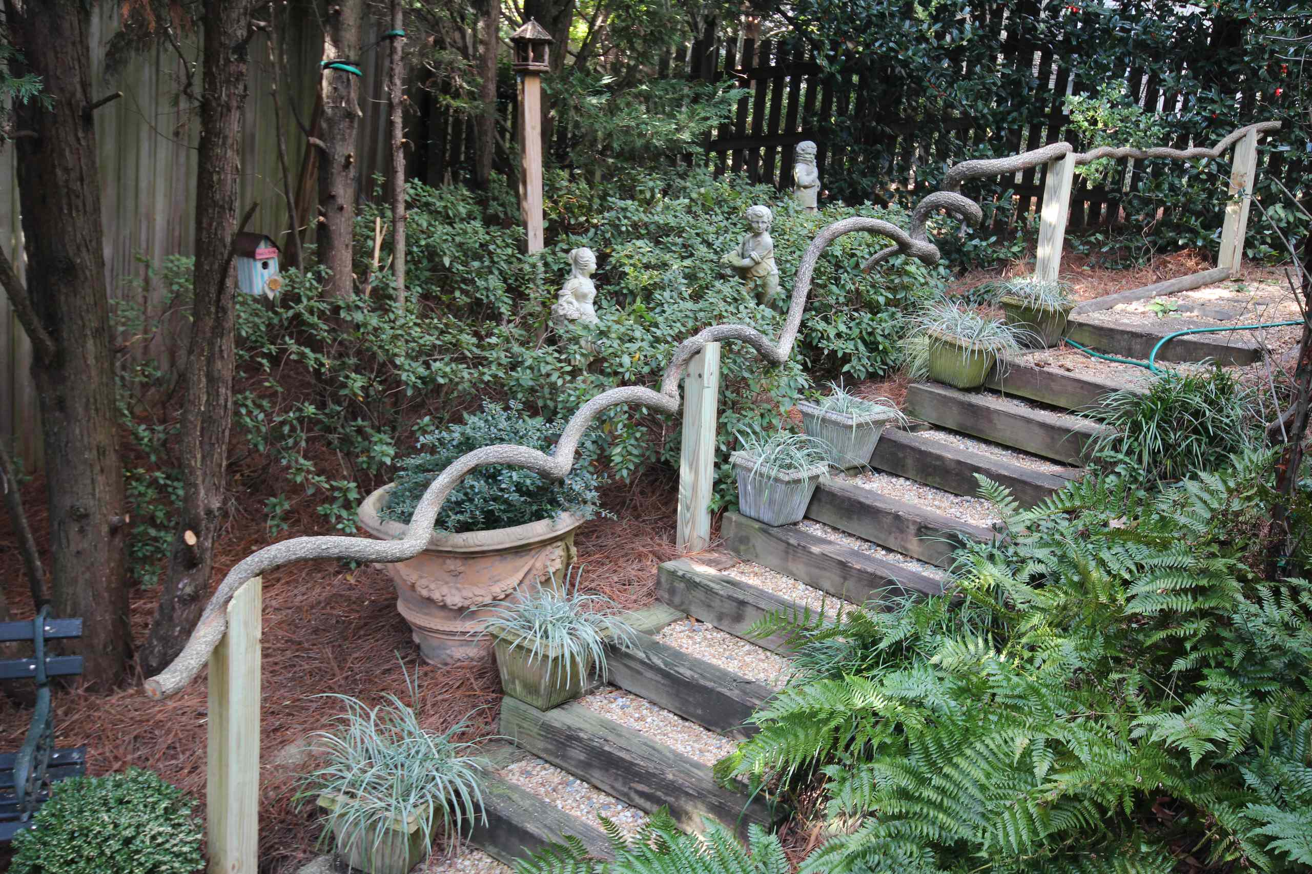Paths can be made of wood, concrete, brick, decomposed granite, flagstone or any other material that feels good to walk on, offers a grip when wet and won’t wash away.