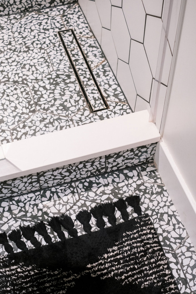 22. Custom-colored grout. “I would almost always avoid white grout,” Palicki says. “Custom-coloring grout to off-white or another color is a great detail that doesn’t cost more and can make a bathroom floor tile look more expensive. Plus, white grout is harder to clean.”