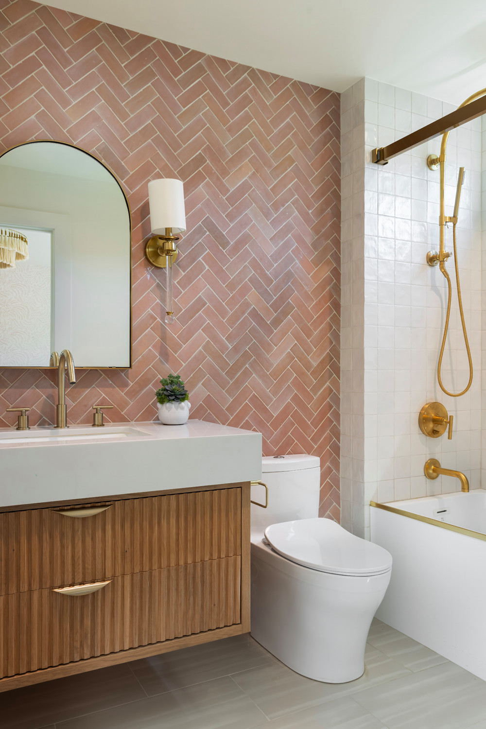 McCarthy agrees. “Champagne bronze adds warmth and character, especially when you pair it with vibrant, colorful tiles,” he says.