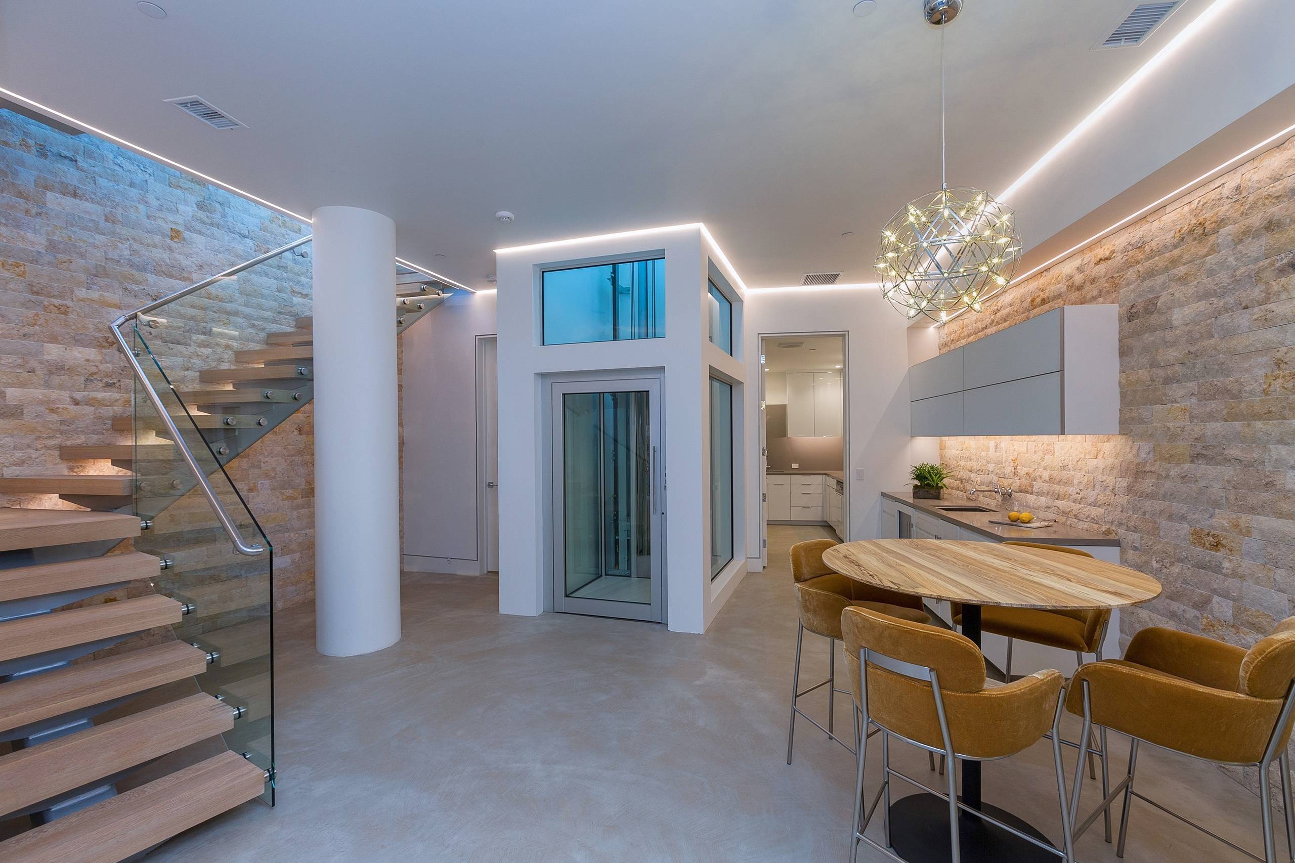 Navigating stairs (not to mention a slide) can be a physical challenge for many people for many reasons. An elevator — like the one in this contemporary five-story home by Hamilton-Gray Design in La Jolla, California — can make a basement more accessible.