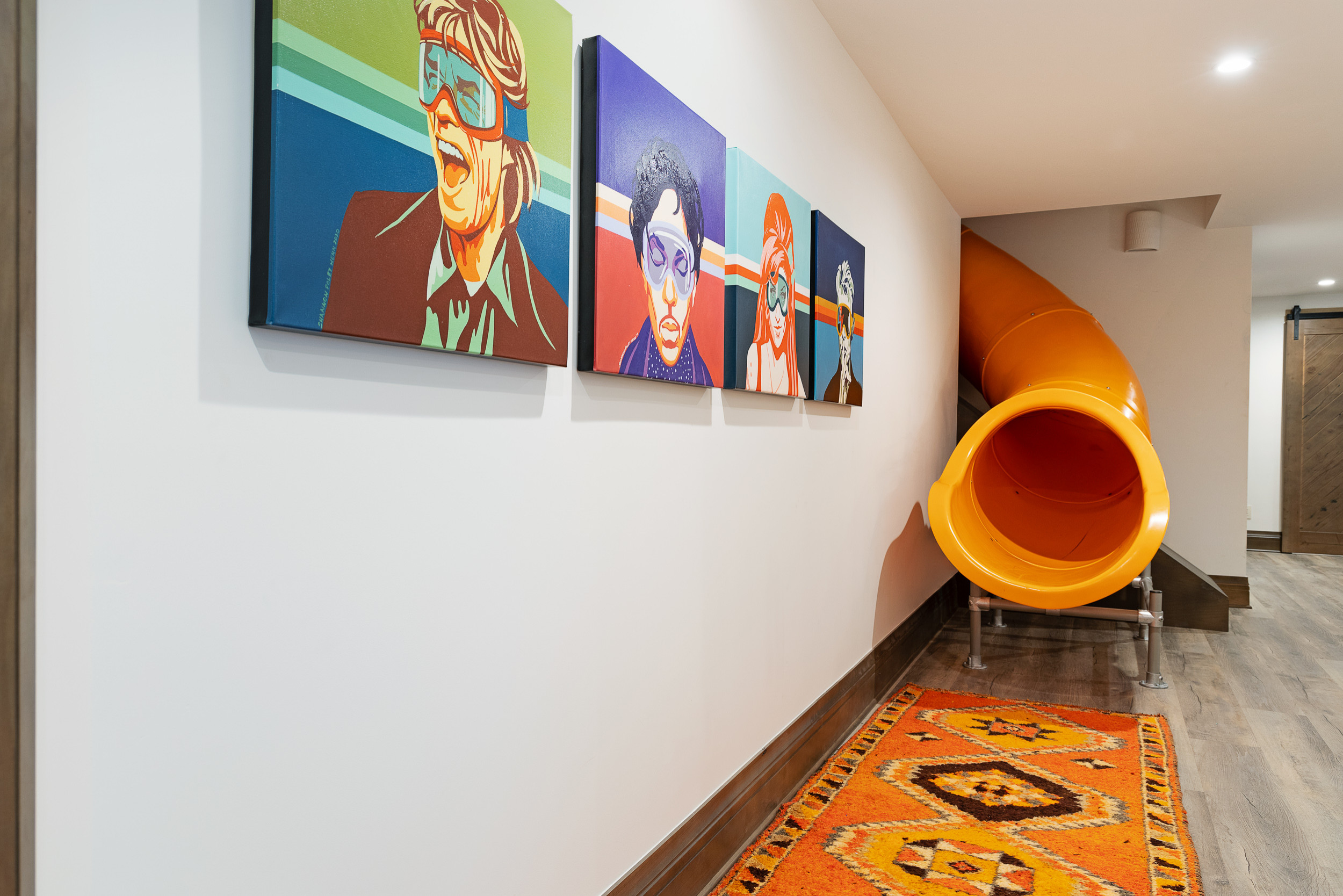 The saying “getting there is half the fun” is true in this Boulder, Colorado, house designed by Proud House Studio, thanks to a slide that transports kids to the activity-filled lower level.