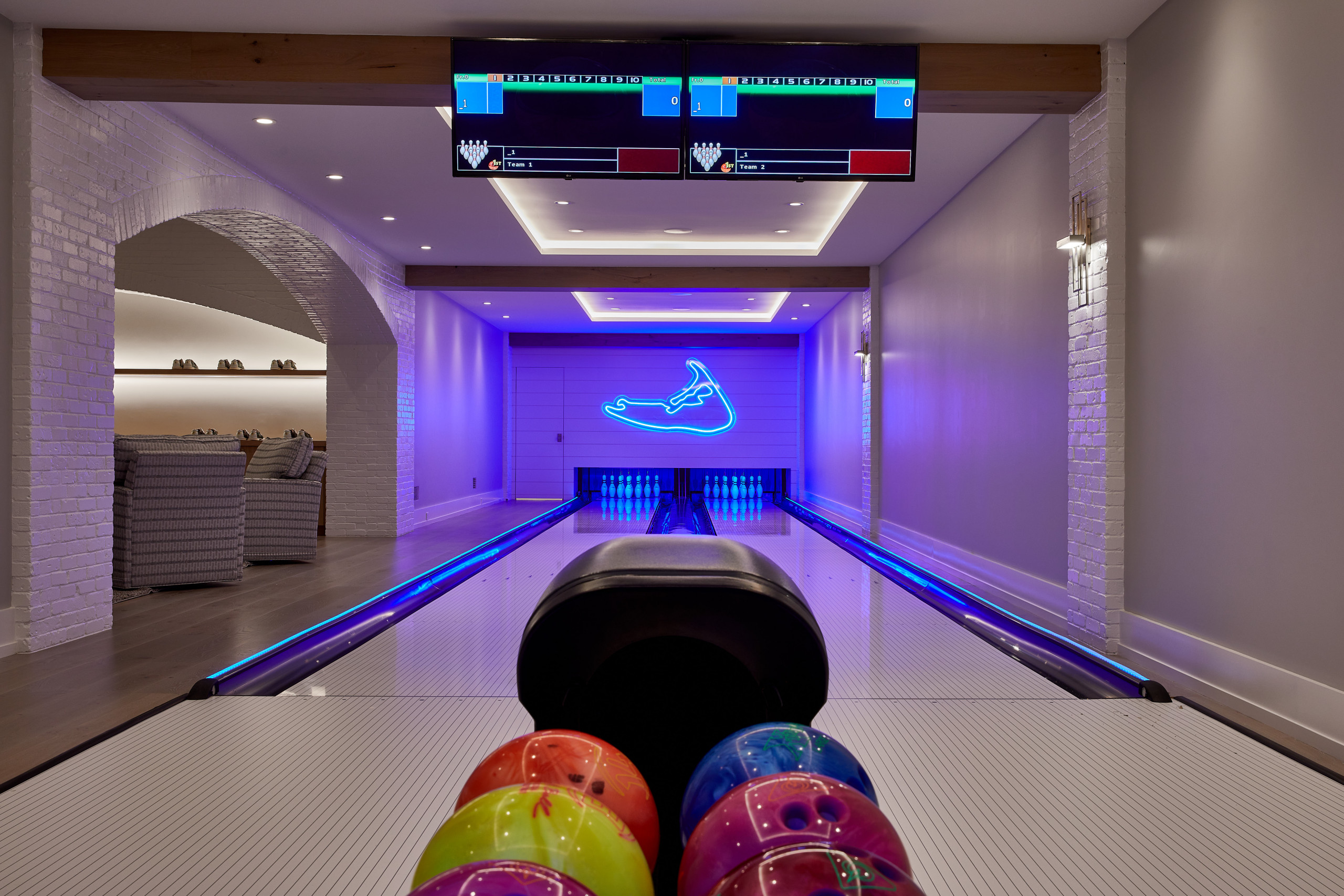 To really bowl over your guests, install a bowling alley in your basement. BPC Architecture + Interior Design did just that for the owners of this huge coastal New England home and even included storage space for bowling shoes.