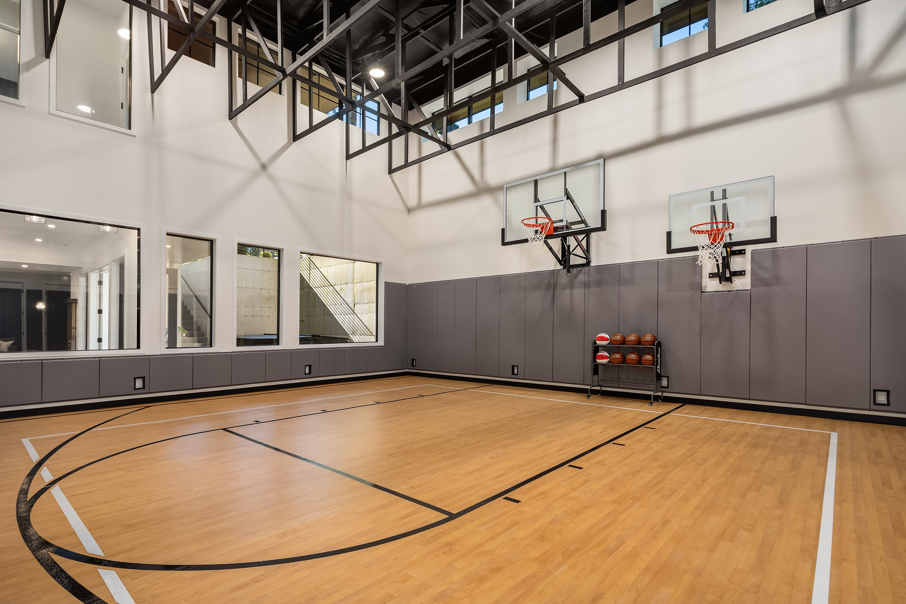 Enfort Homes left it all on the court when building the basement of this Kirkland, Washington, house. There’s a pool table, bar, theater, gym, sauna and more, but the indoor basketball court, with its multiple-height hoops, padded walls and viewing area, makes it truly baller.