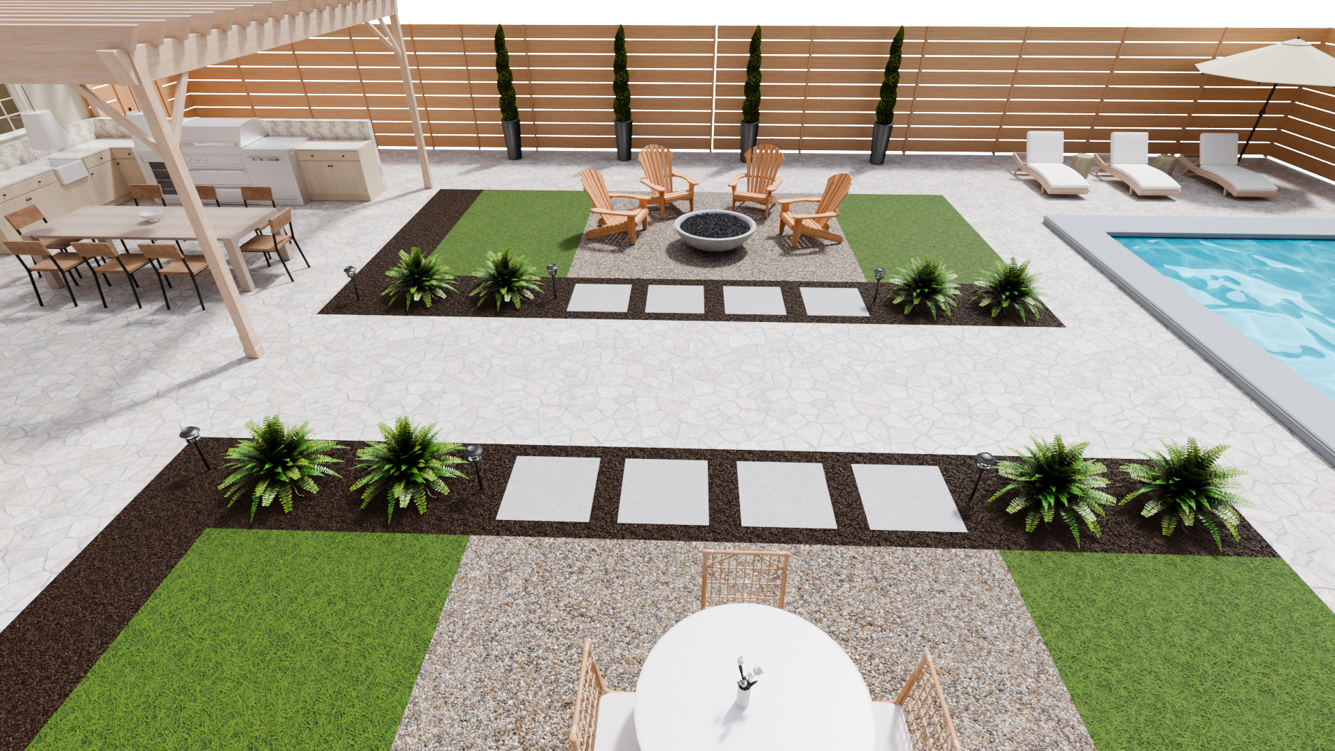 “Air signs thrive in spaces that allow for both connection and solitude,” Foster Hurd says. “We designed this backyard to feel as boundless as the sky, reflecting their airy, adaptable nature.”