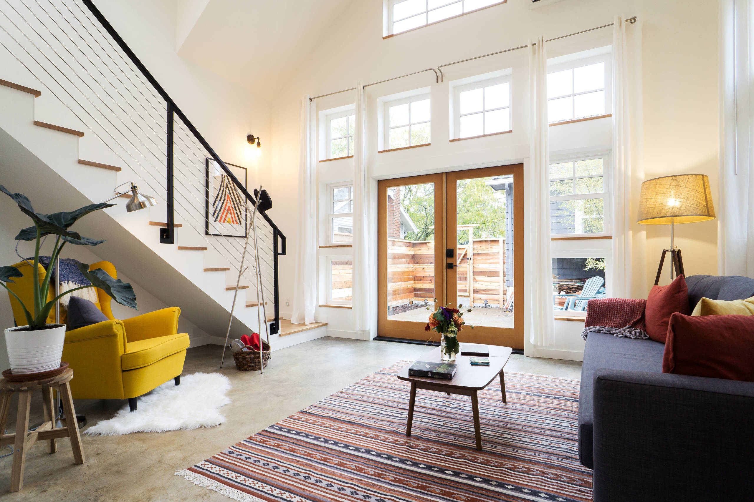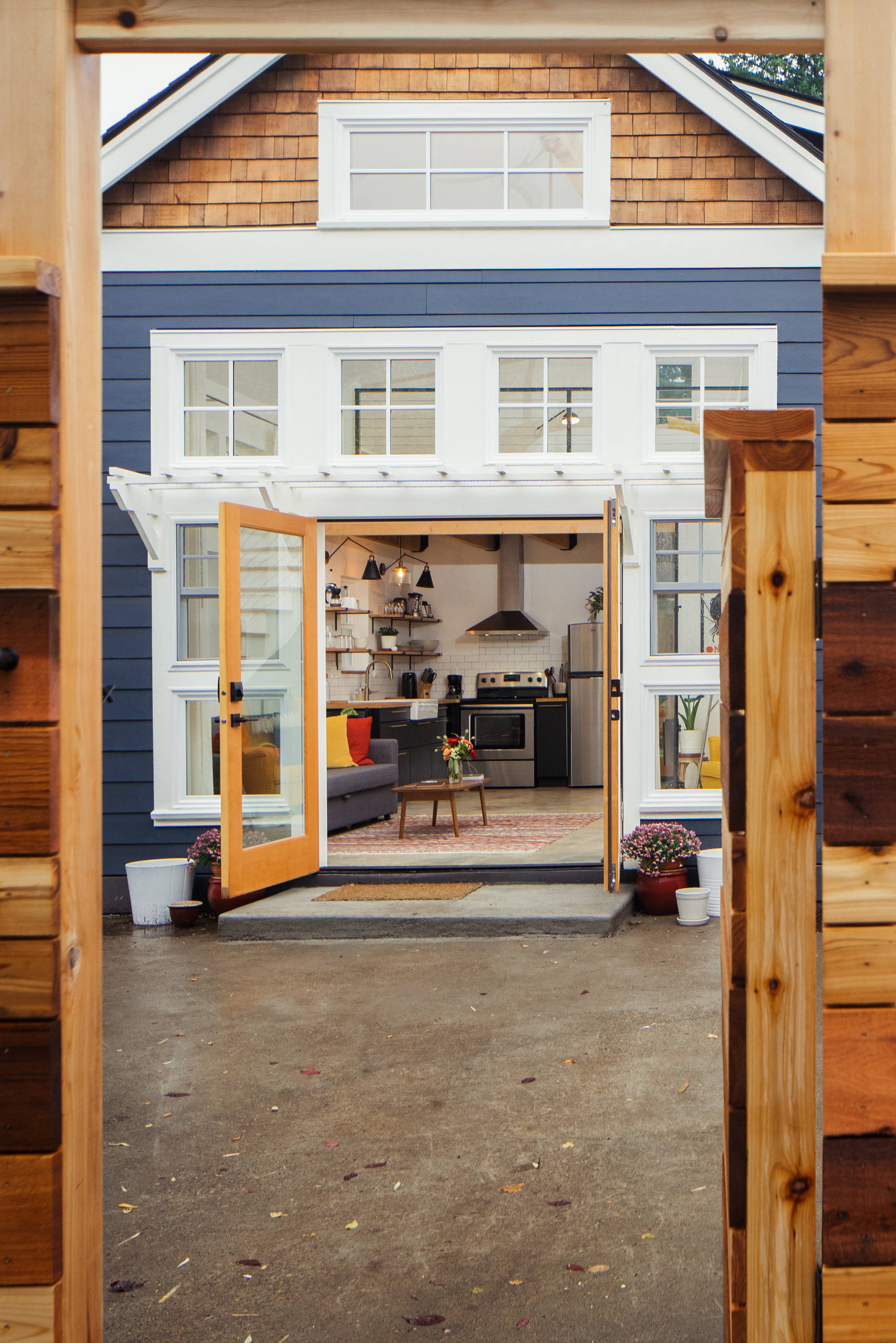Returning from a yearlong trip in a van to Central America, a couple from Portland realized they were happy living with less and preserving the rental income that came from renting out their five-bedroom house. They came up with a plan to convert the two-car garage behind the house into a city-approved ADU and did most of the renovation work (save for electrical and plumbing) themselves.