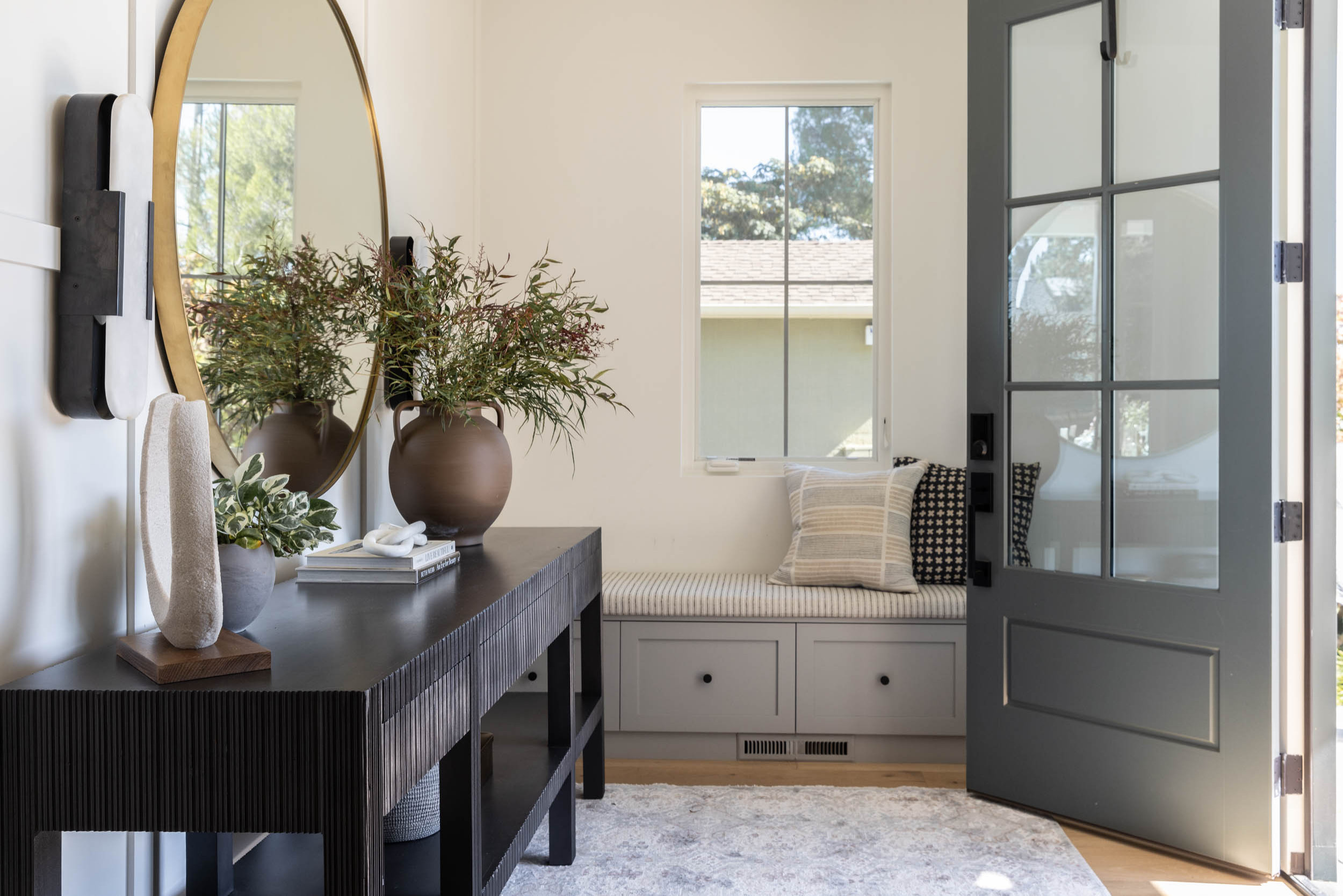 With all the comings and goings happening in an entry, it’s a good idea to consider adding pieces that allow you to sit and put on shoes or drop a bag or keys. This will give you functionality as well as help you round out your decor to create a thoughtful and welcoming feel that defines the rest of your home.