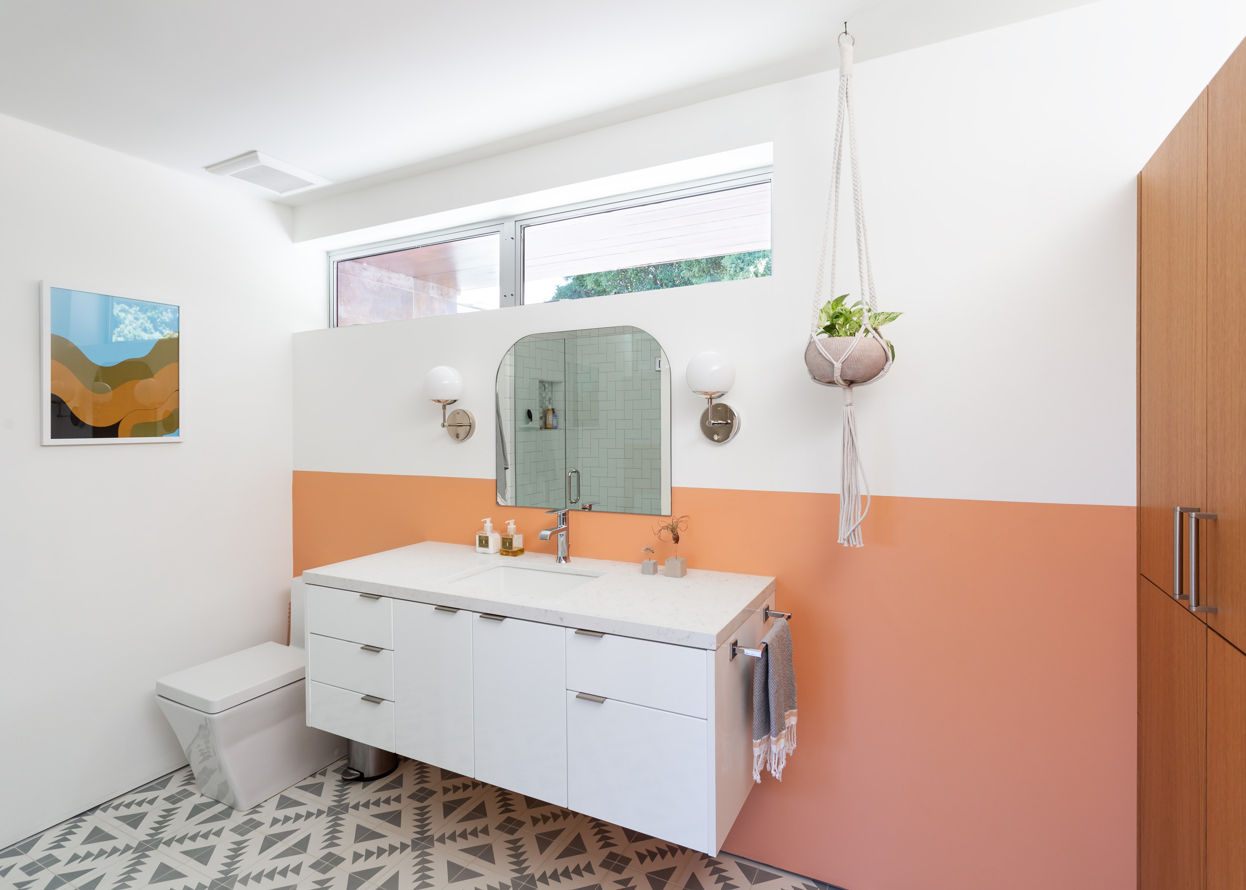 Here it adds the perfect dash of pretty color to this bathroom, giving the space a fresh and modern vibe.
