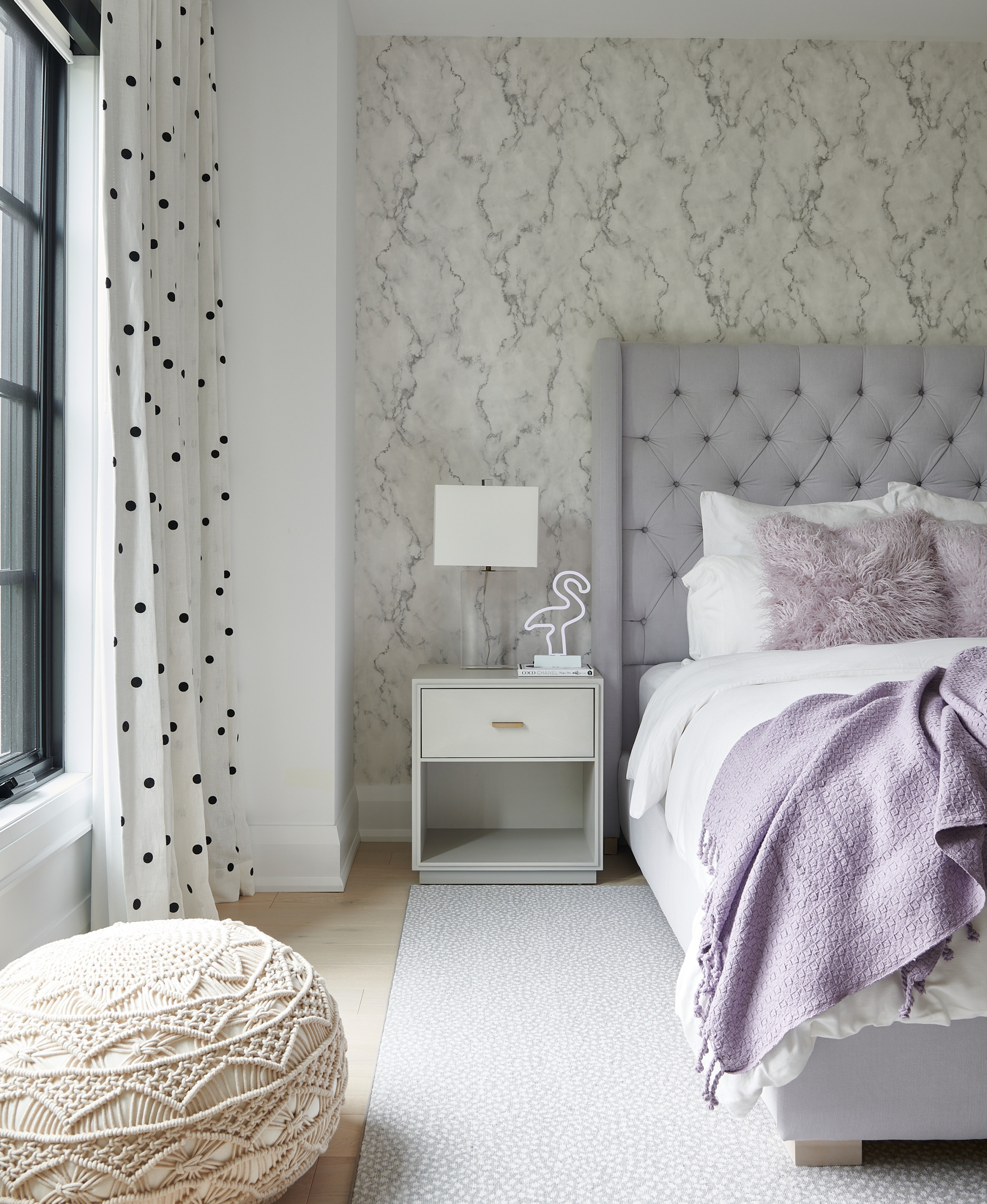 16. A veined stone-like pattern provides the framework for soothing grays and creams in this Toronto bedroom by Jodie Rosen Design.